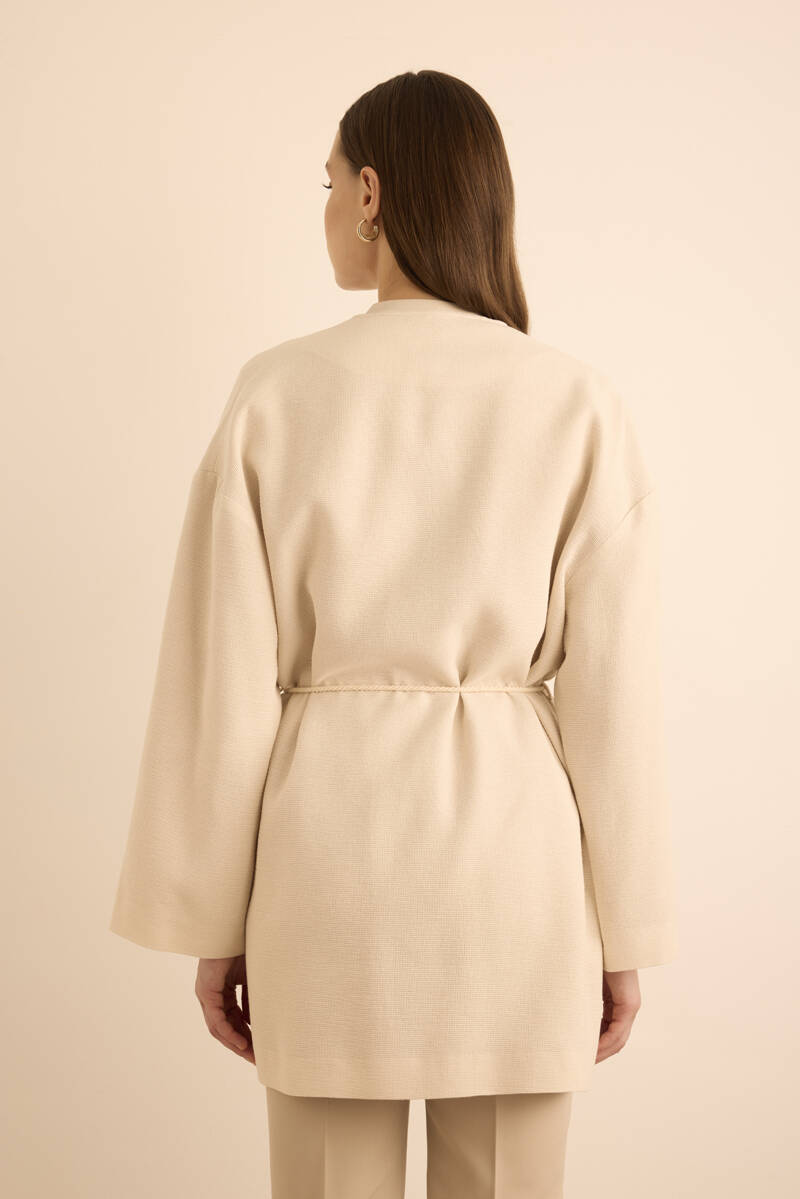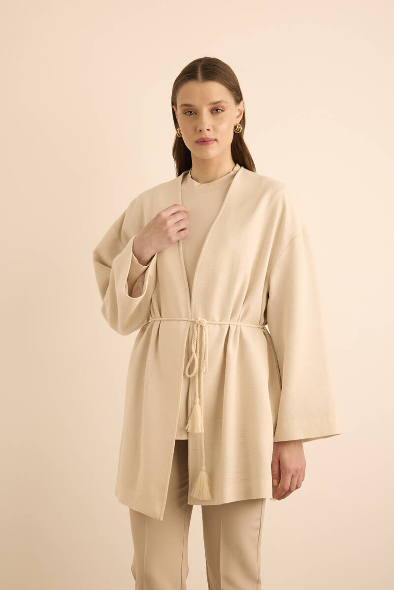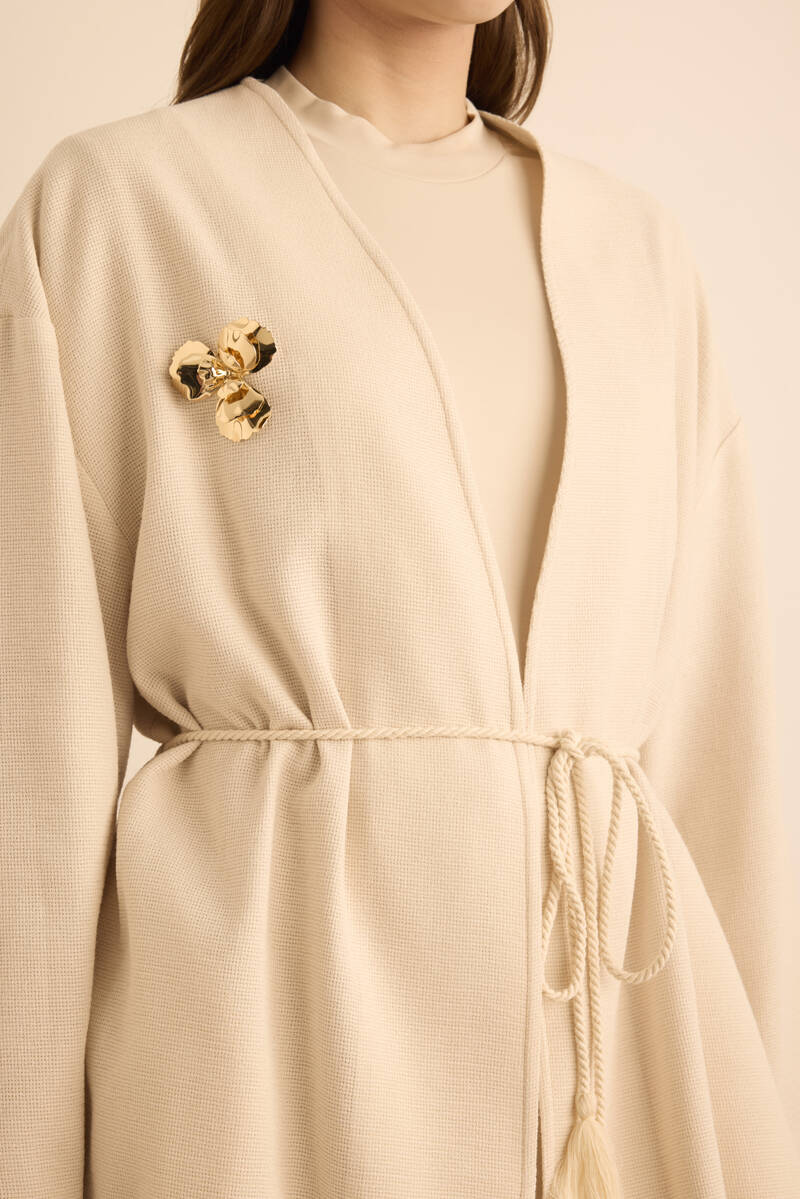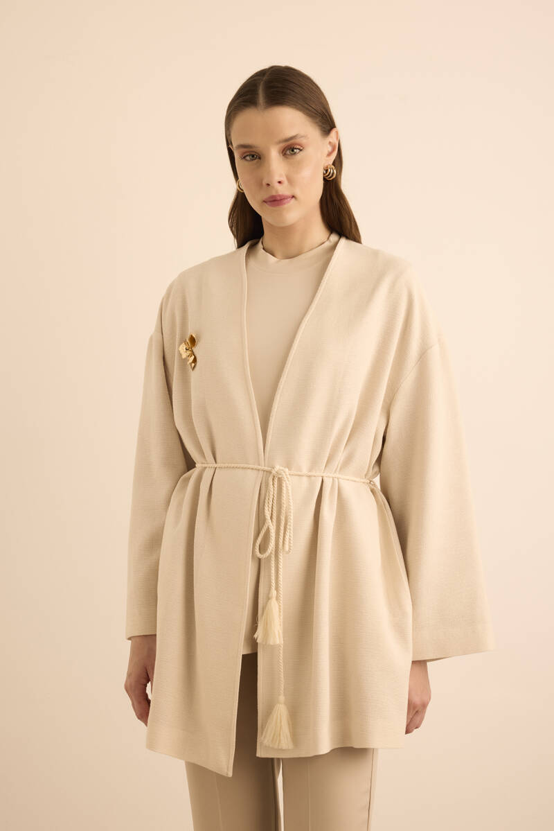 Bej Metal Broşlu Beli Kordon Bağcıklı Kap