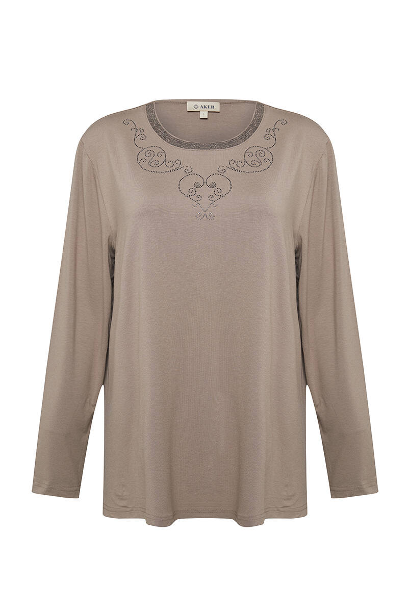 Ekru Uzun Kollu Bisiklet Yaka Body