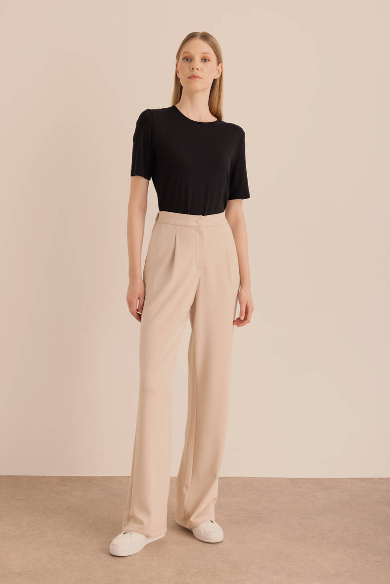 Bej Klasik Tencel Keten Pantolon