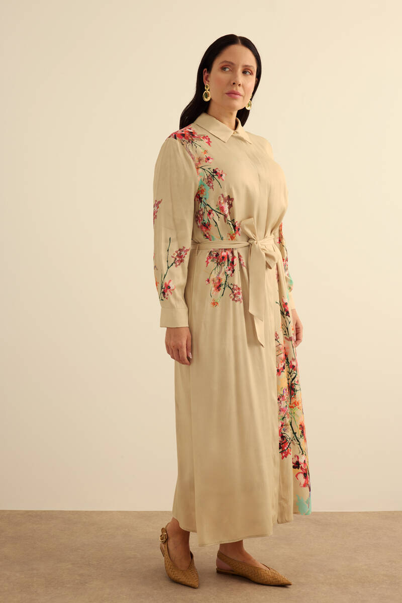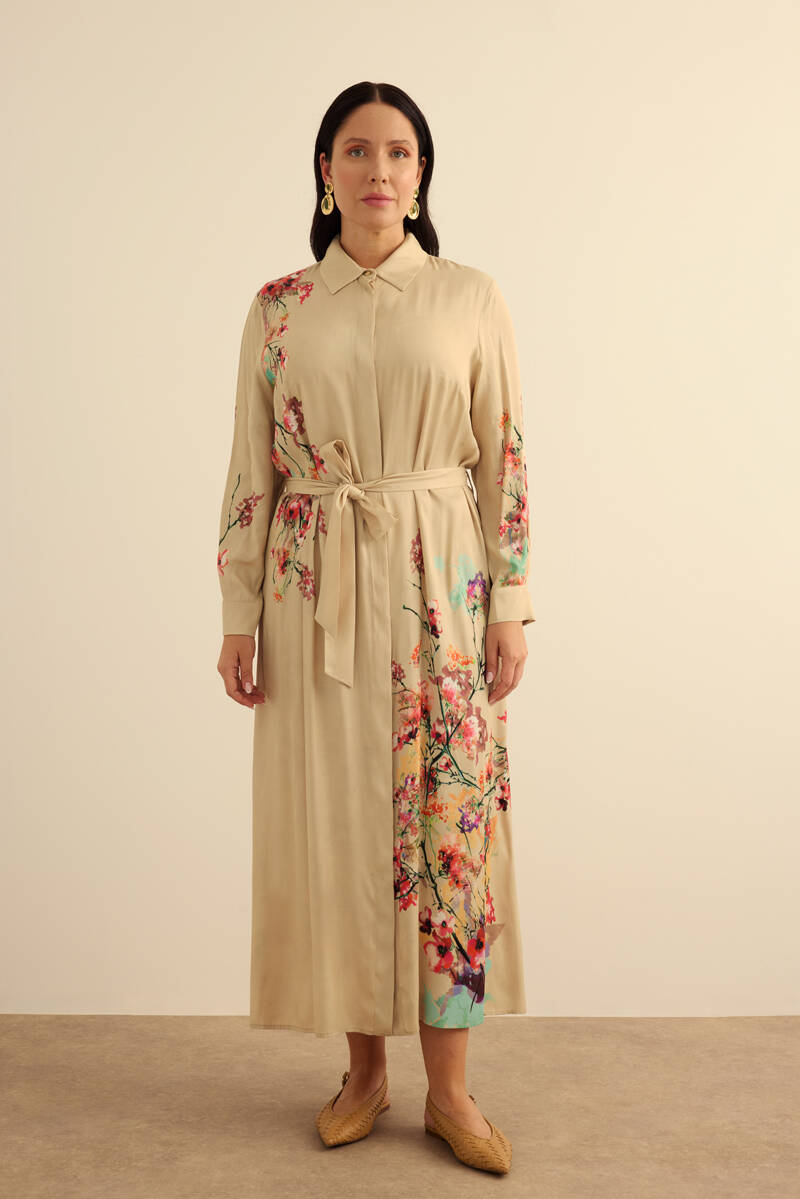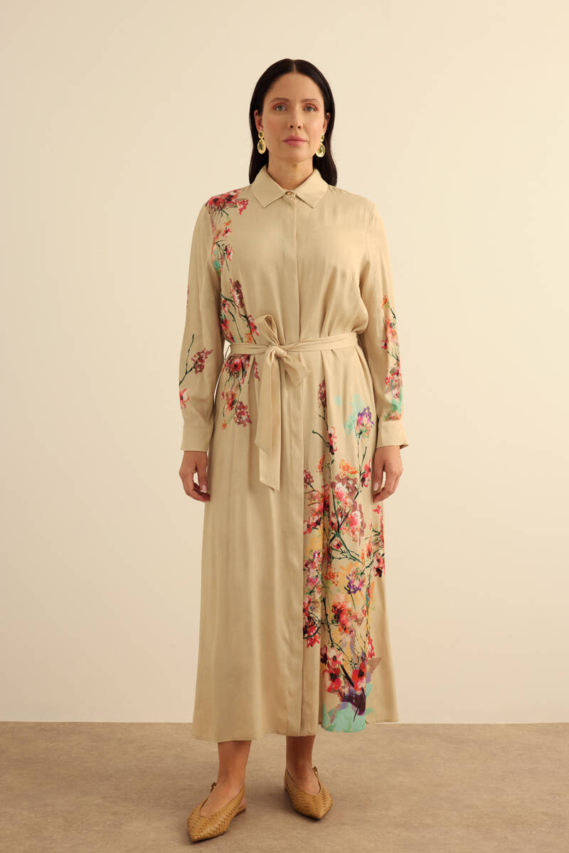Turkuaz Geometrik Desenli Gömlek Elbise