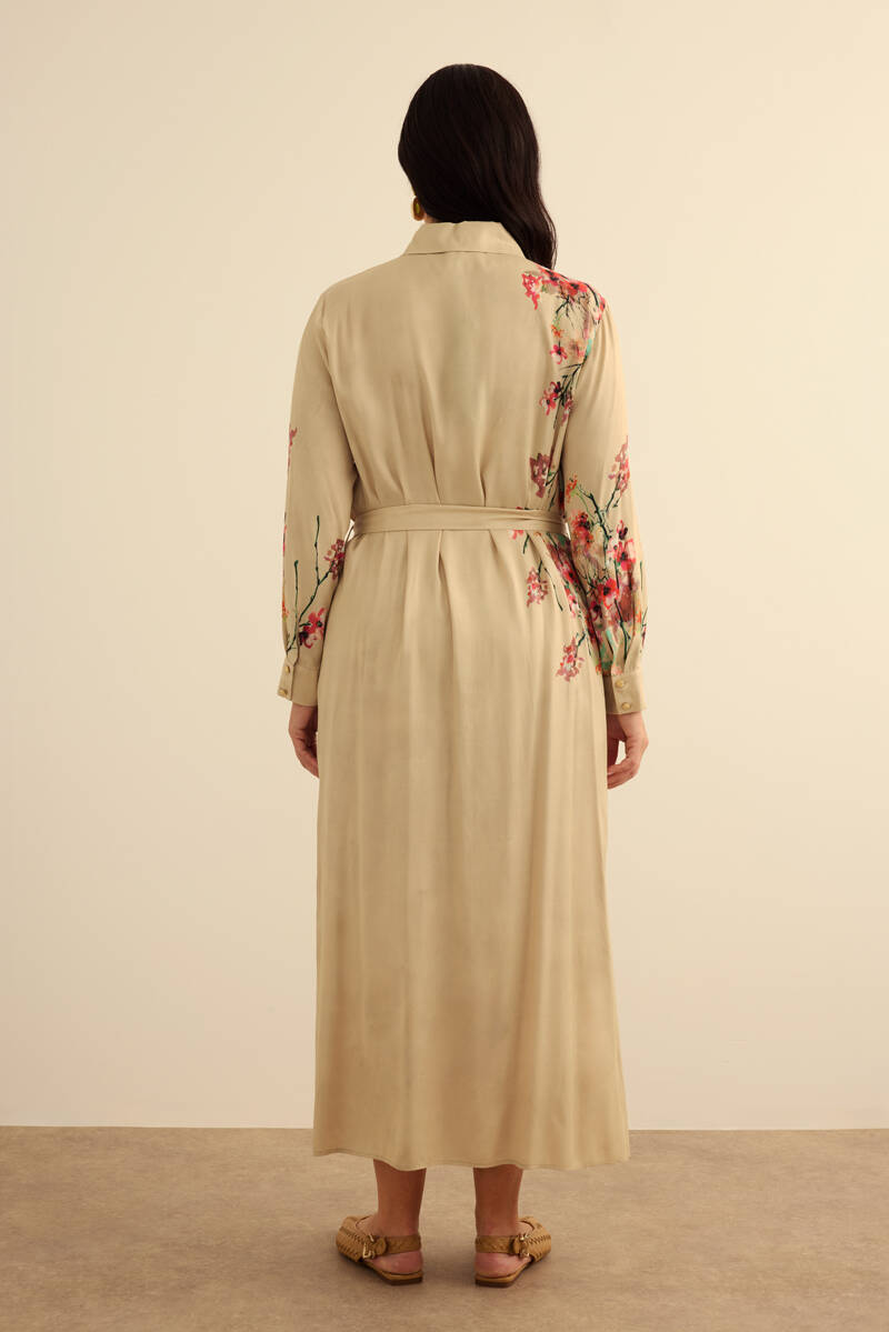 Siyah Seyyar Çiçek Detaylı Varak Dokuma Elbise