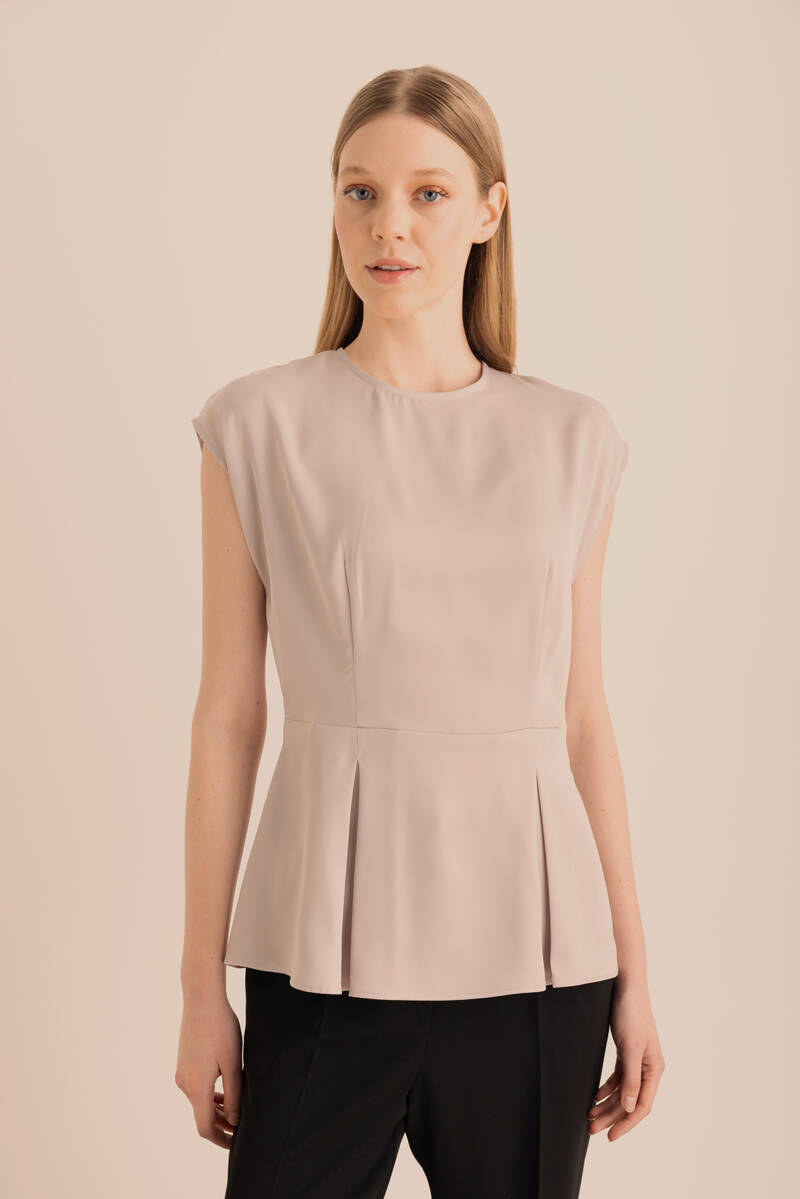 Ön Göğüs Kısmı Pile ve Parça Detaylı Bluz