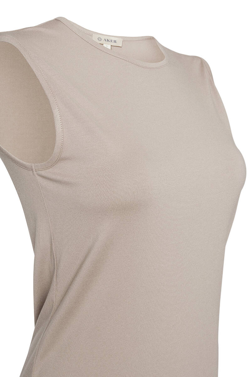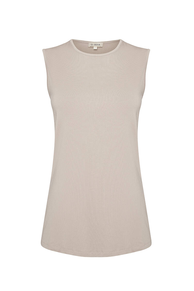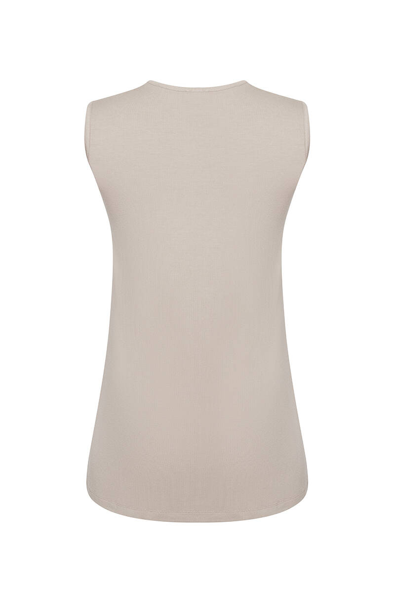 Bej Sıfır Kollu Bisiklet Yaka Body