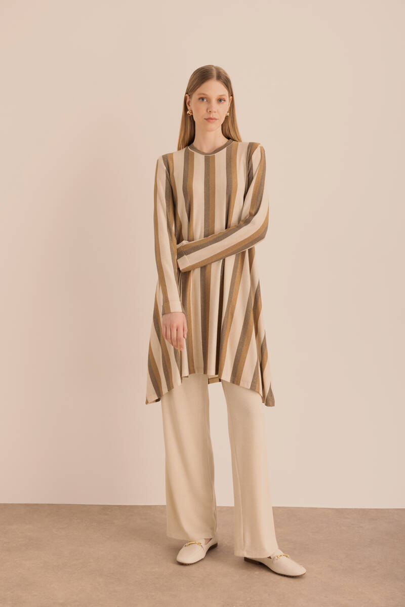 Ekru Kol Ucu Dikiş Detaylı Viscon Tunik
