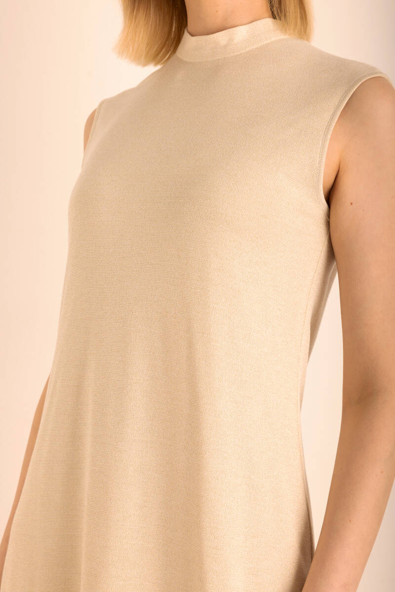 Bej Simli Örme Astarlı Kolsuz Elbise