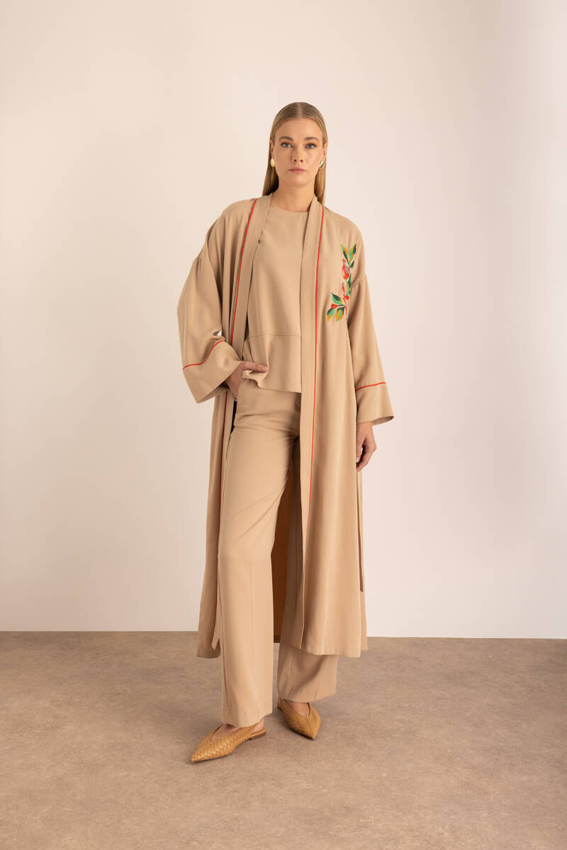 Bej Kontrast İç Biyeli Tencel Oversize Ceket