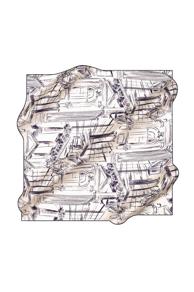Geometrik Desenli 90X90 İpek Krep Saten Eşarp