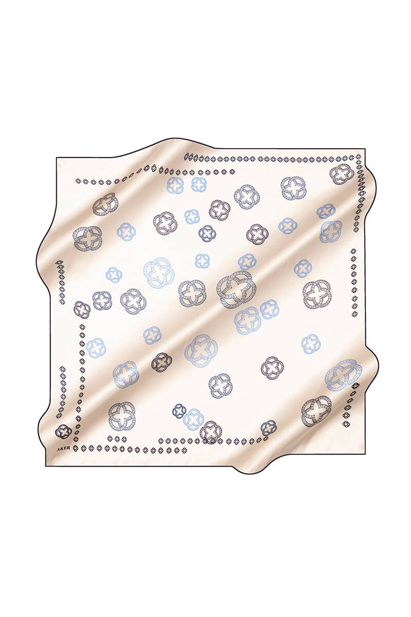 Logo Desenli 90X90 İpek Krep Saten Eşarp