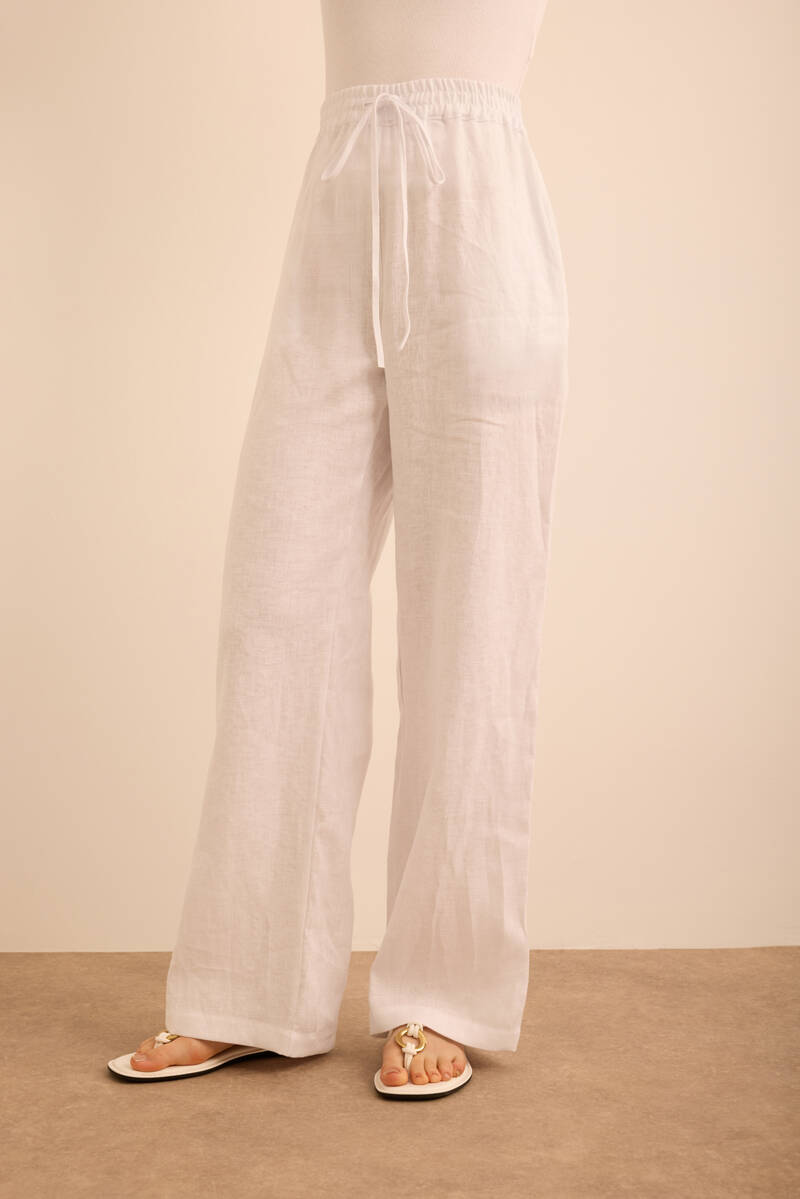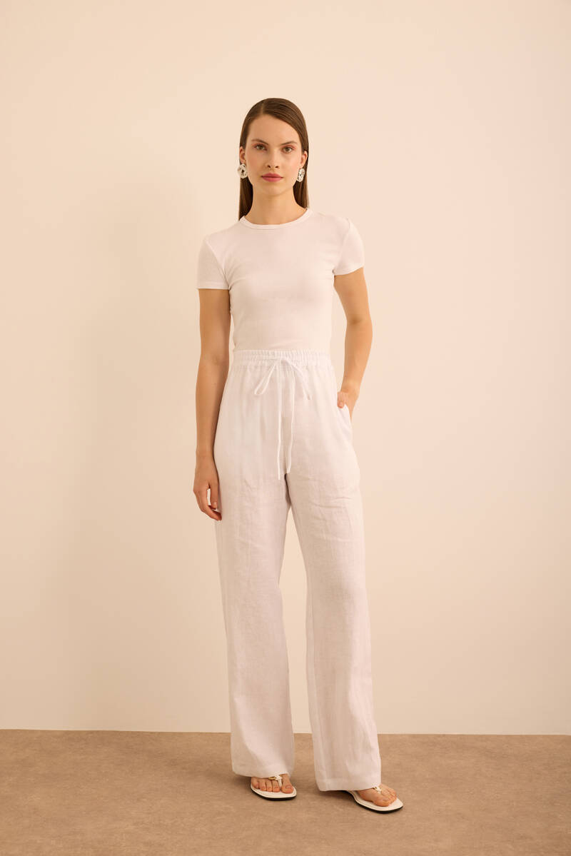 Siyah Beli ve Paçası Lastikli Balon Form Keten Pantolon
