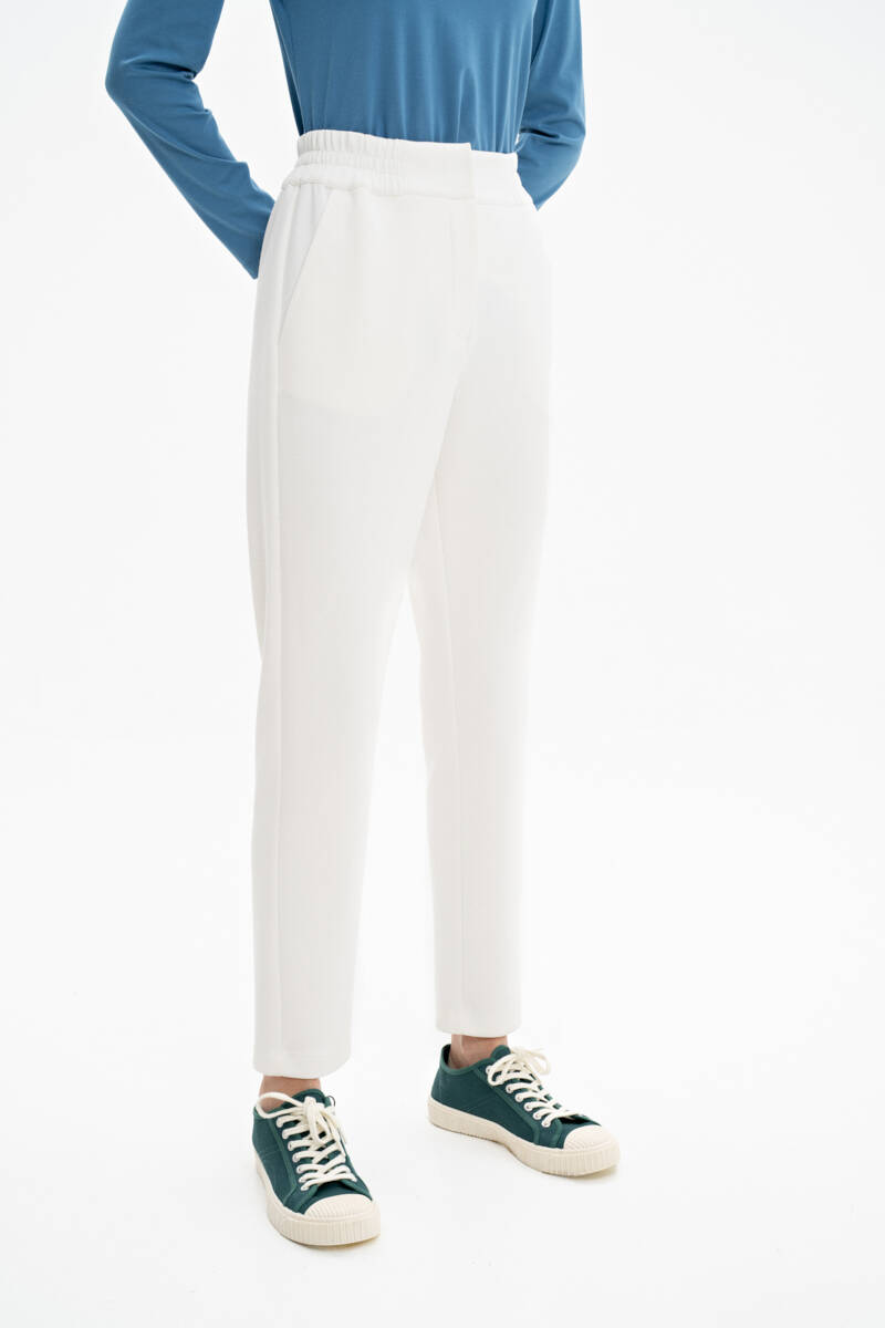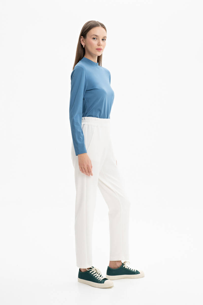 Beyaz Beli Lastikli Örme Pantolon