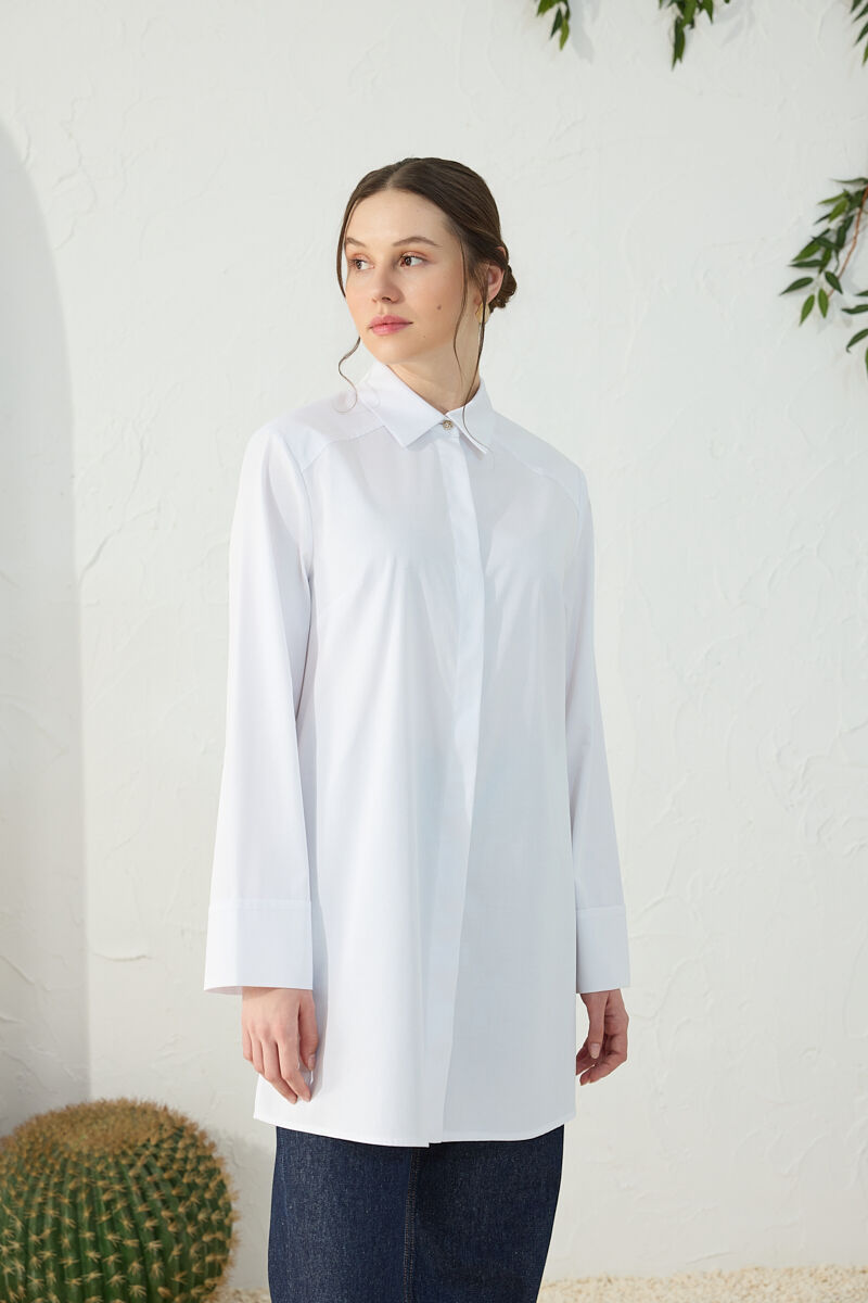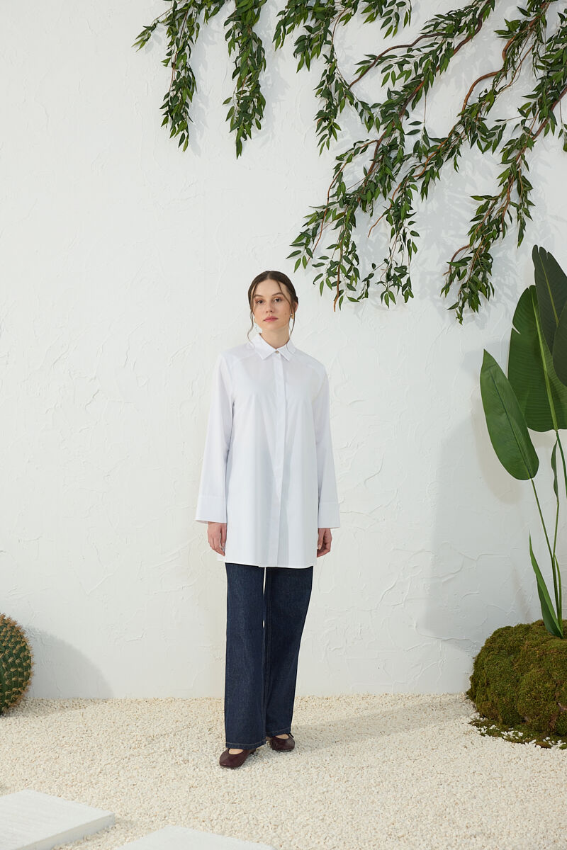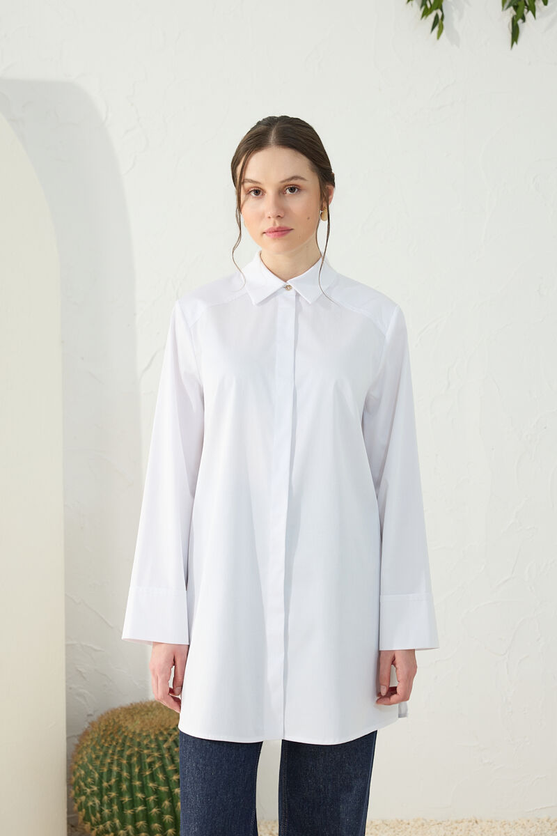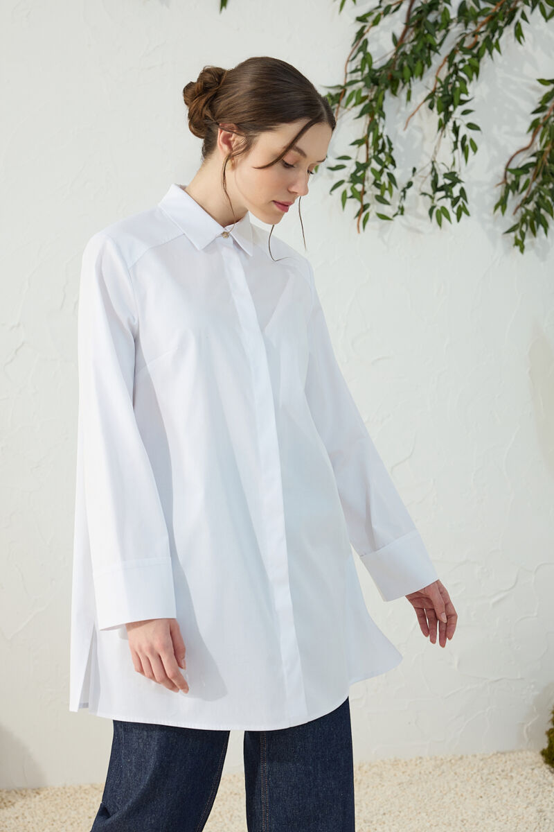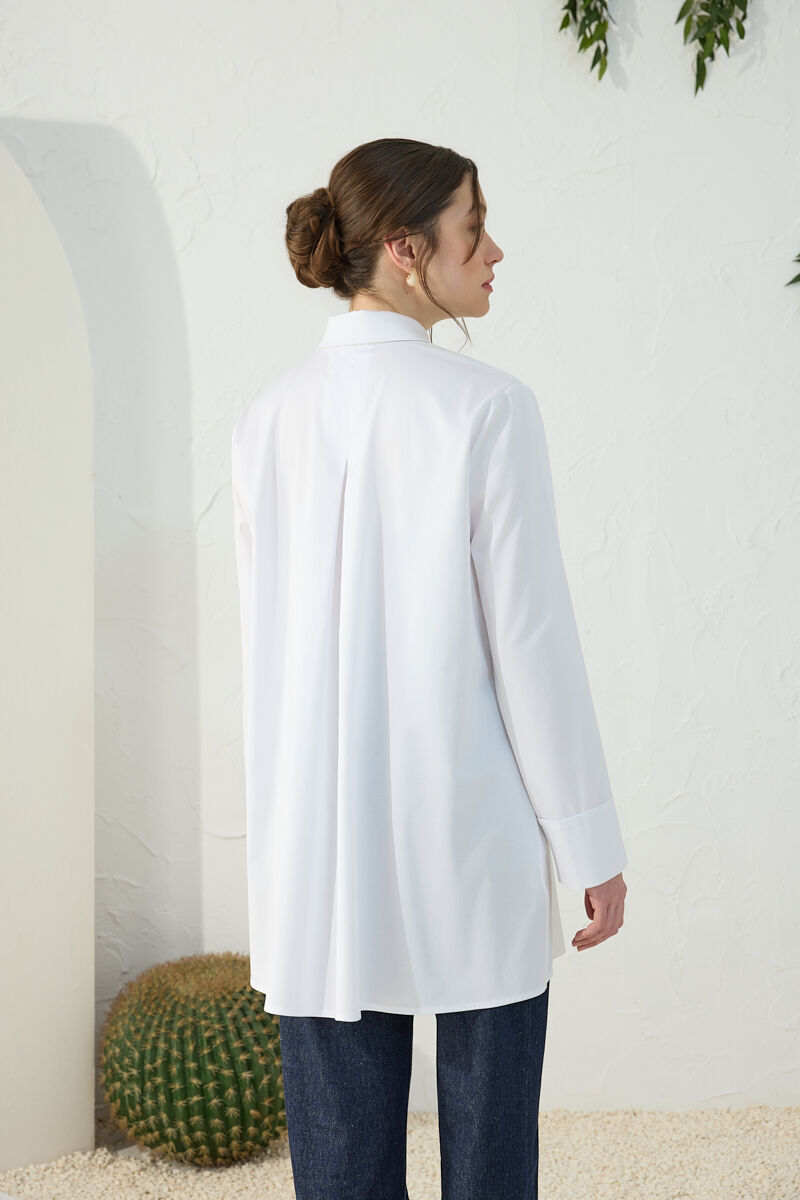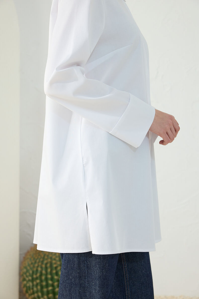 Beyaz Sırtı Volan Detaylı Cotton Gömlek