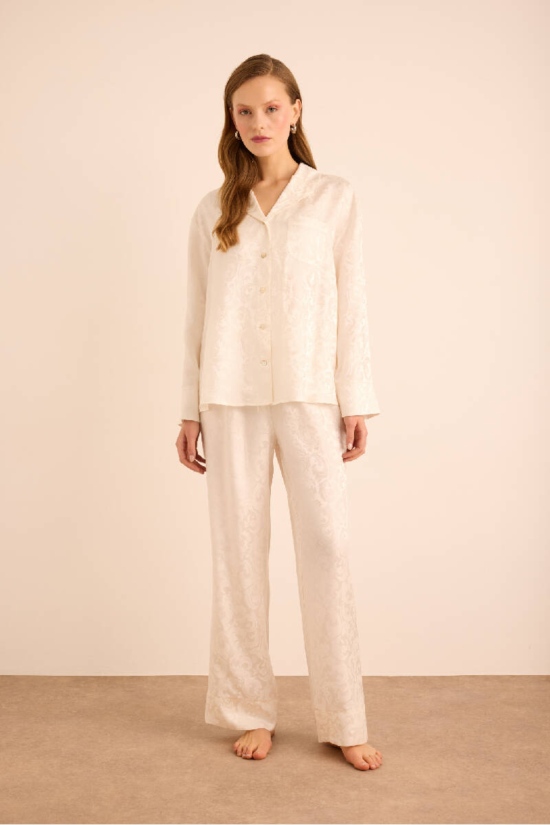 Vizon Beli Lastikli Viscon Cotton Pijama Altı