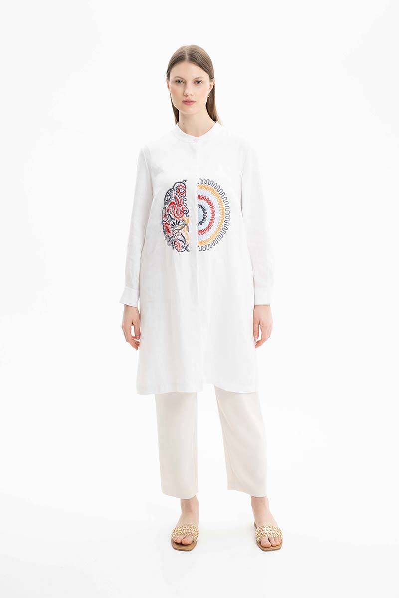 Mint Rahat Kesim İşleme Detaylı Tunik