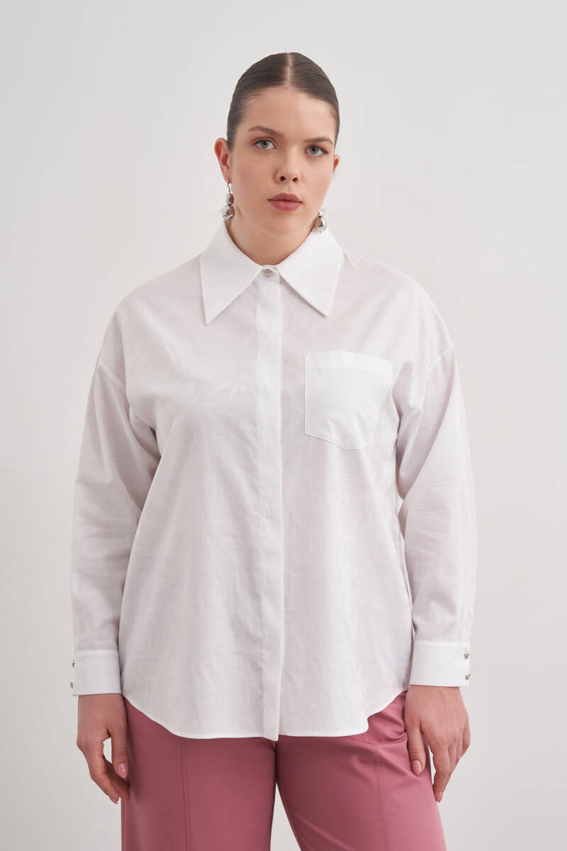 Pembe Yakası Pili ve İşleme Detaylı Dokuma Bluz