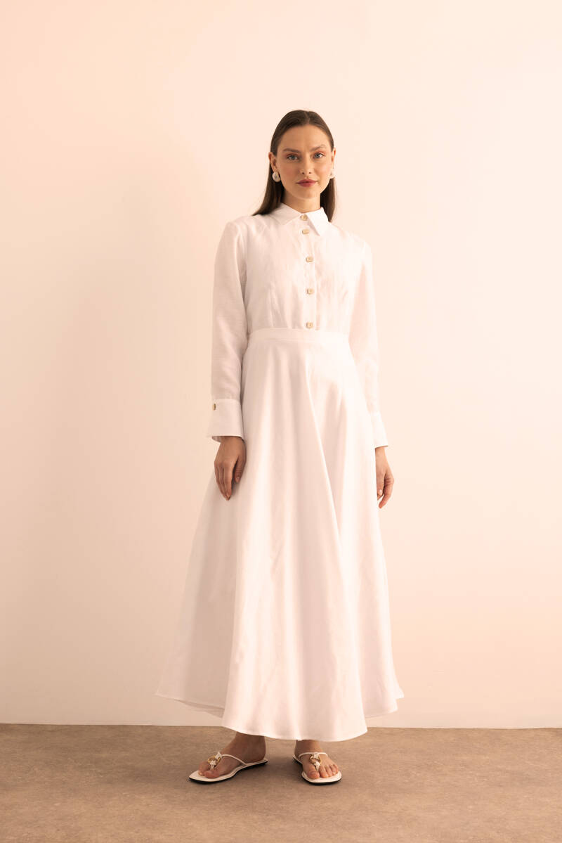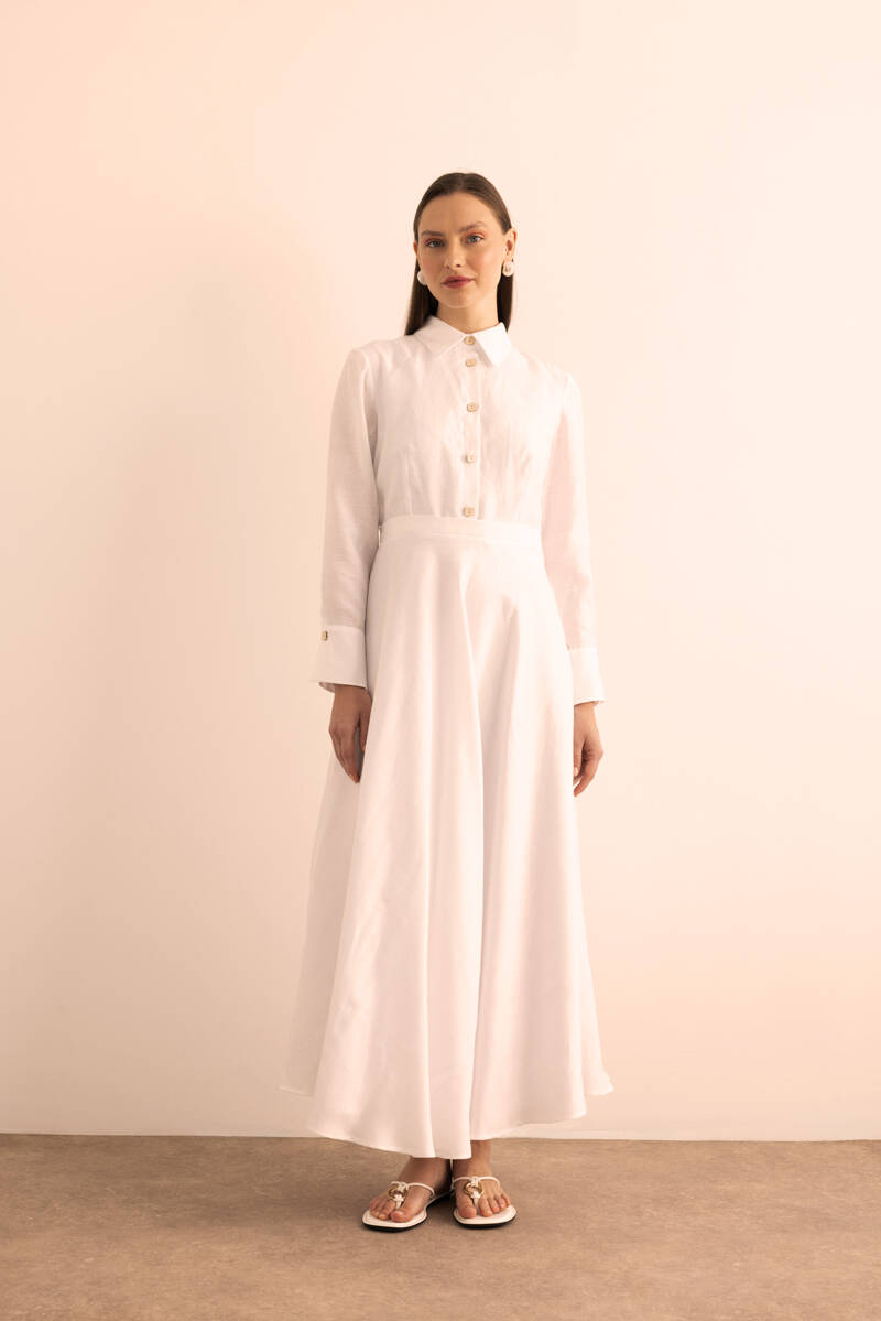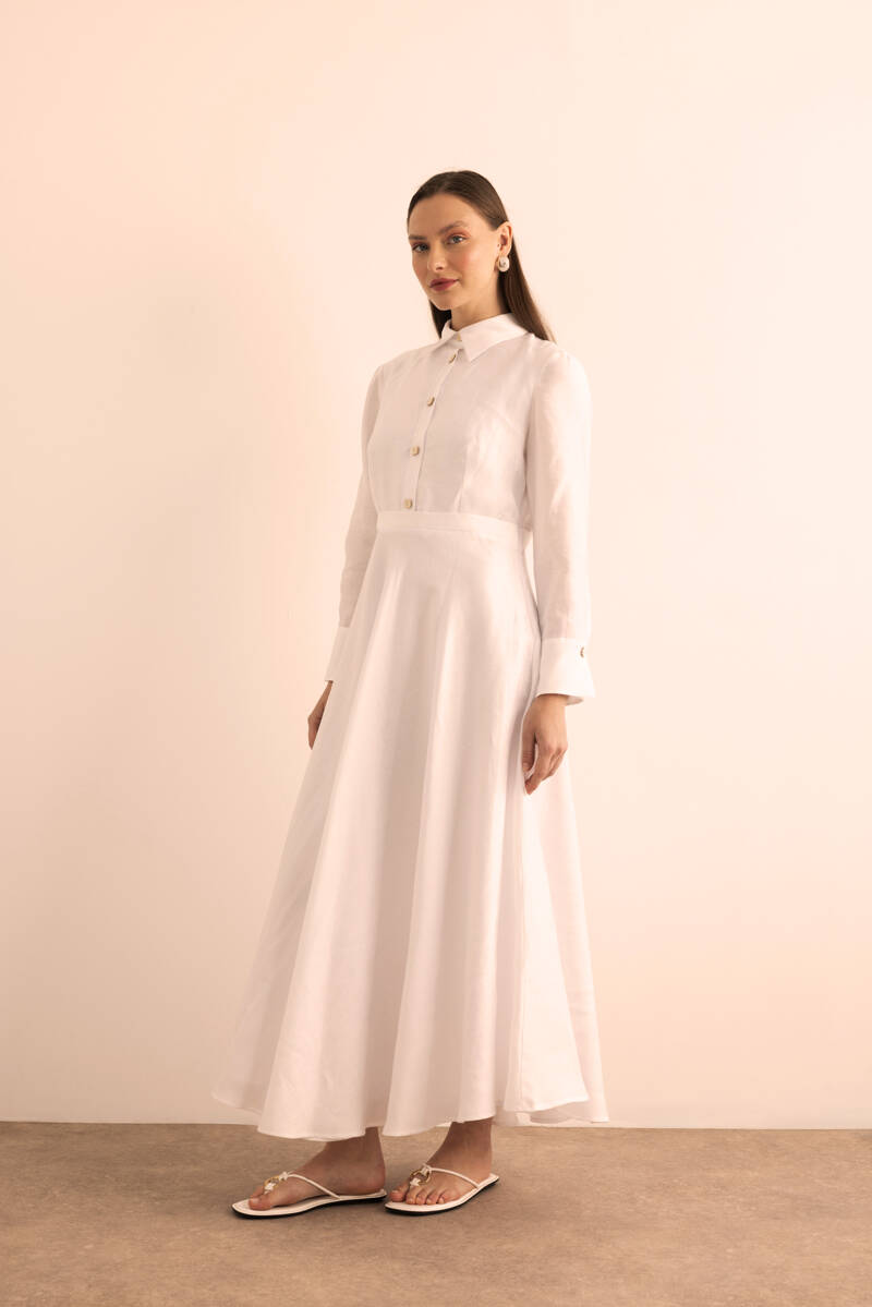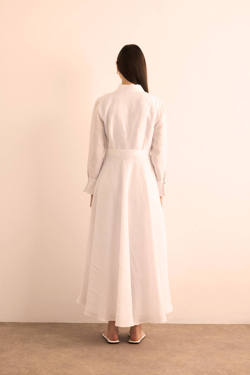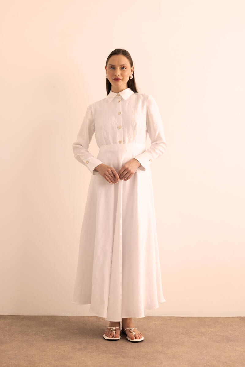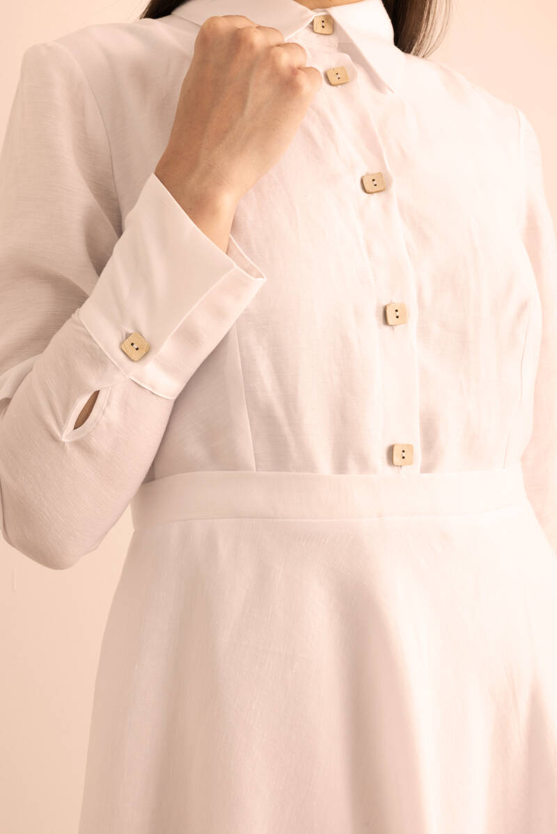 Ekru Kumaşı Püskül Yüzeyli Cotton Gömlek Elbise