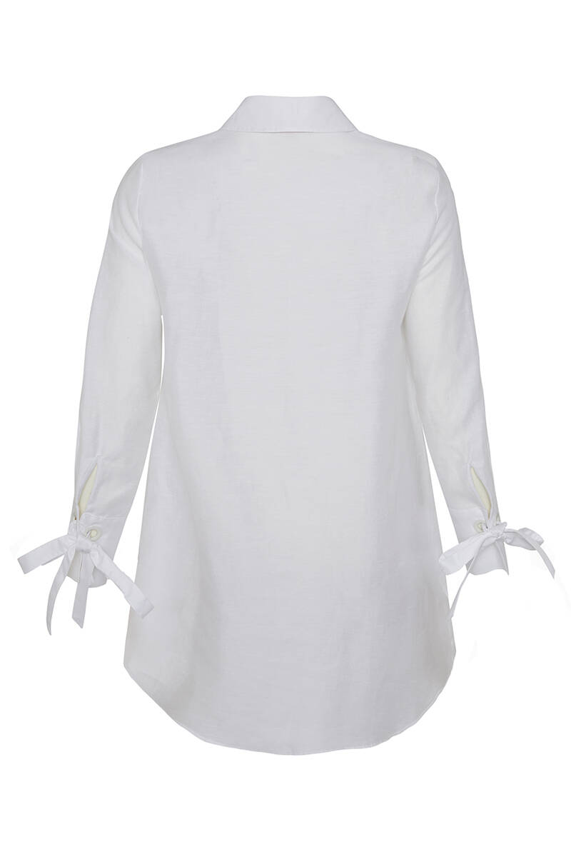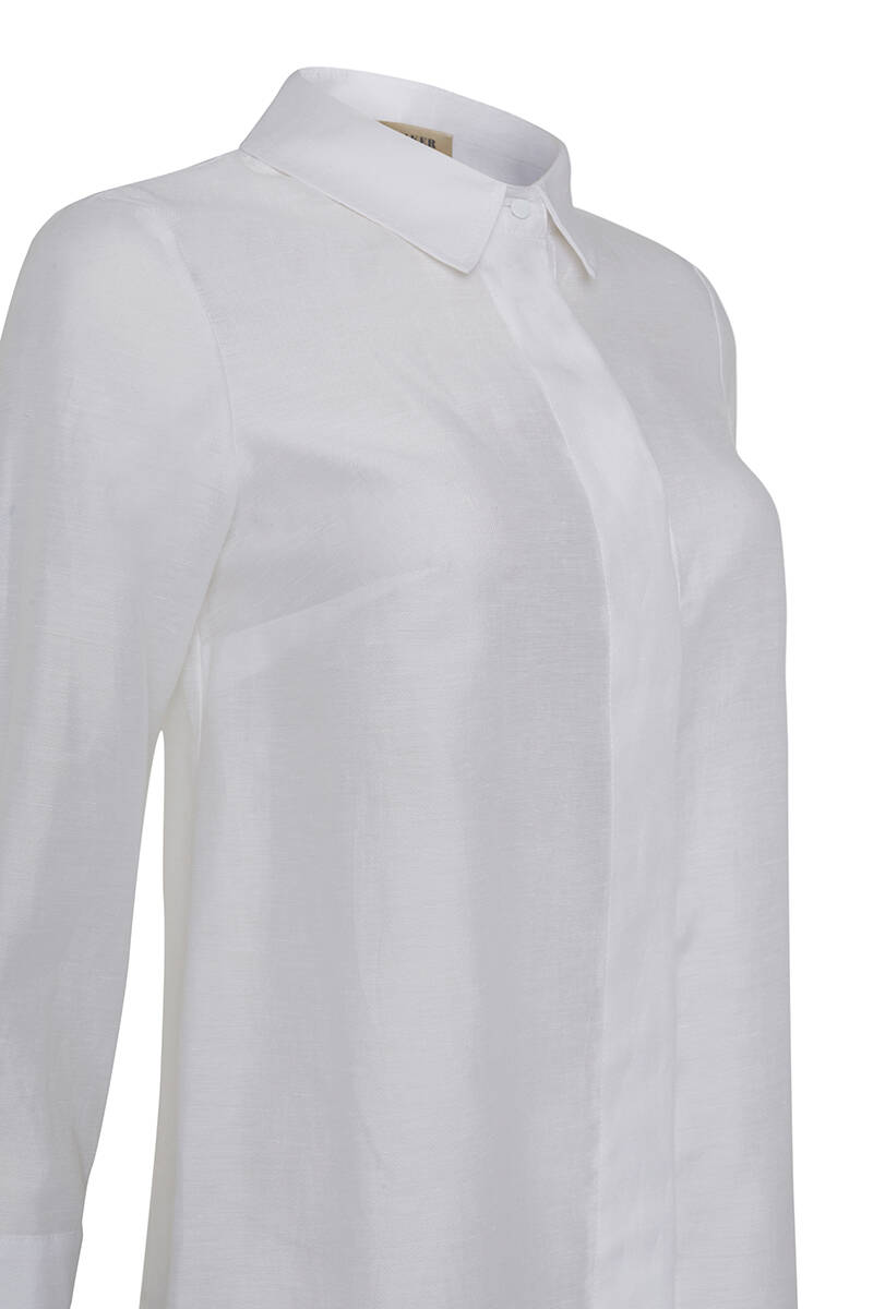 Beyaz Kuşgözlü Keten Gömlek Tunik