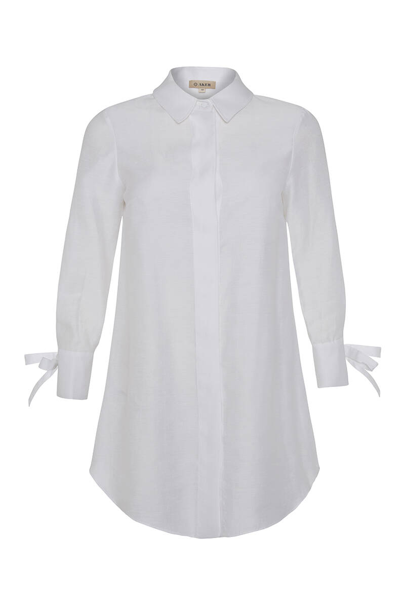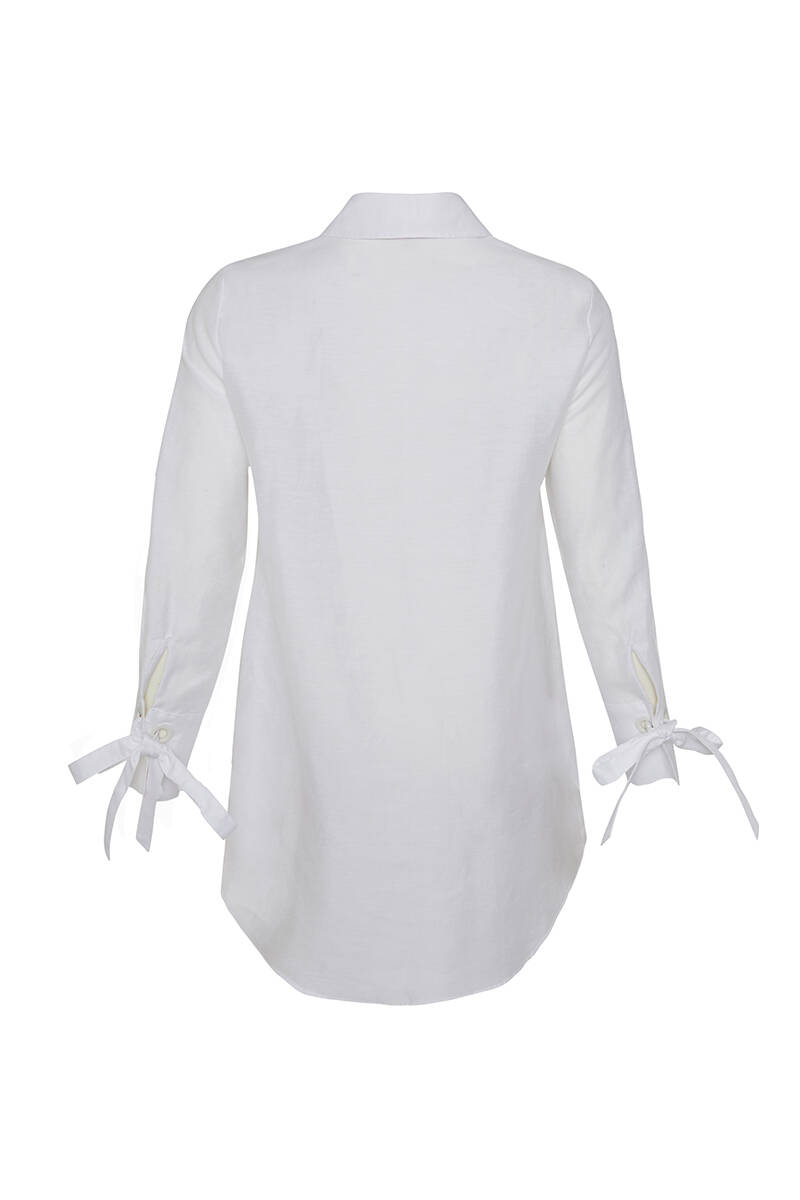 Beyaz Kuşgözlü Keten Gömlek Tunik