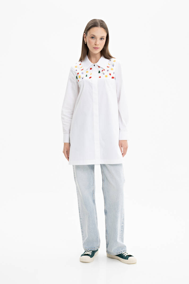Mint Rahat Kesim İşleme Detaylı Tunik