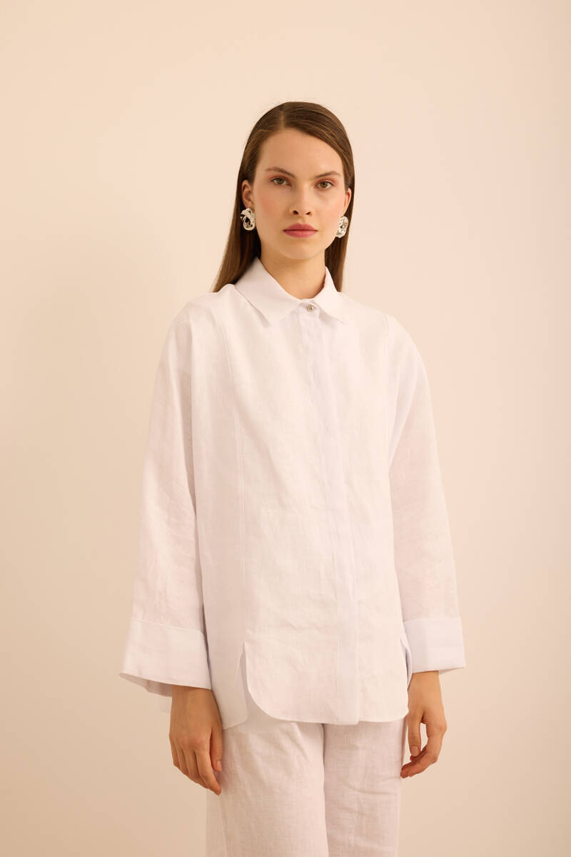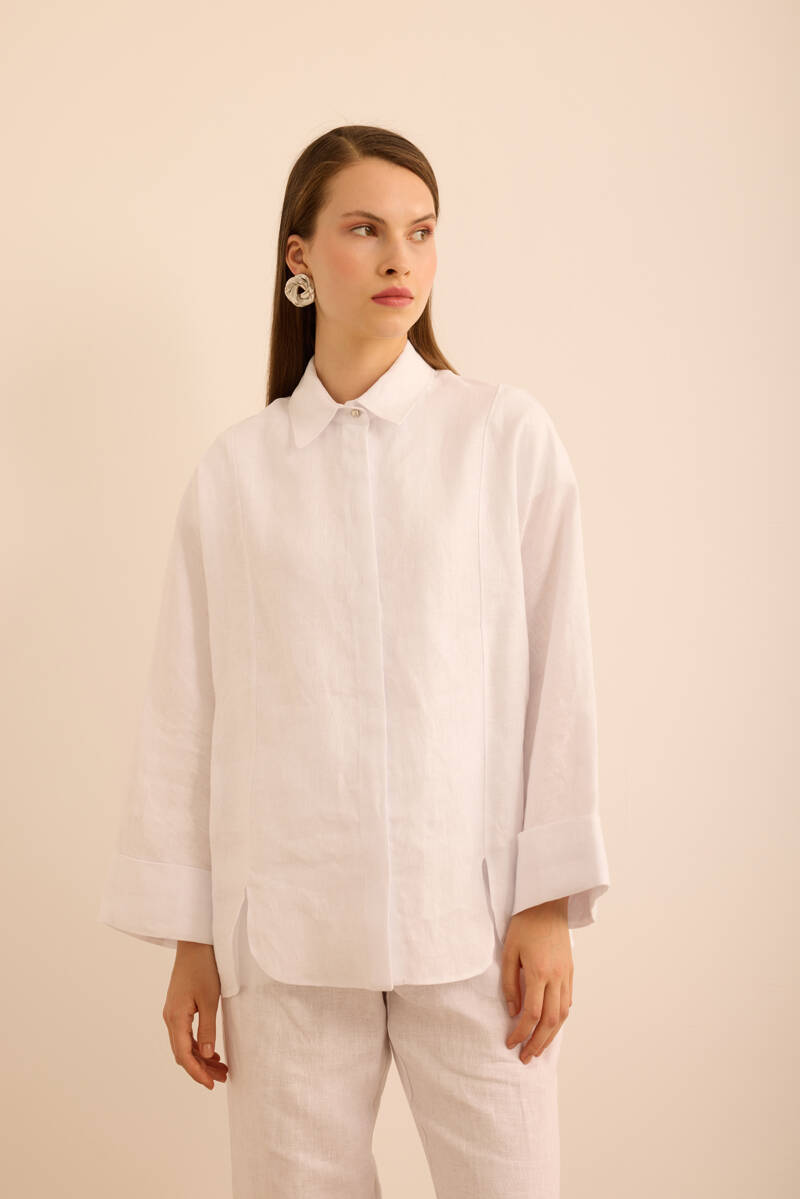 Saks Ön Göğüs Kısmı Pile ve Parça Detaylı Bluz