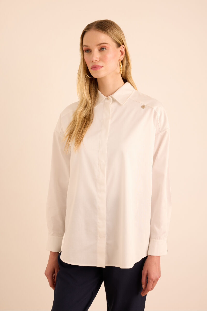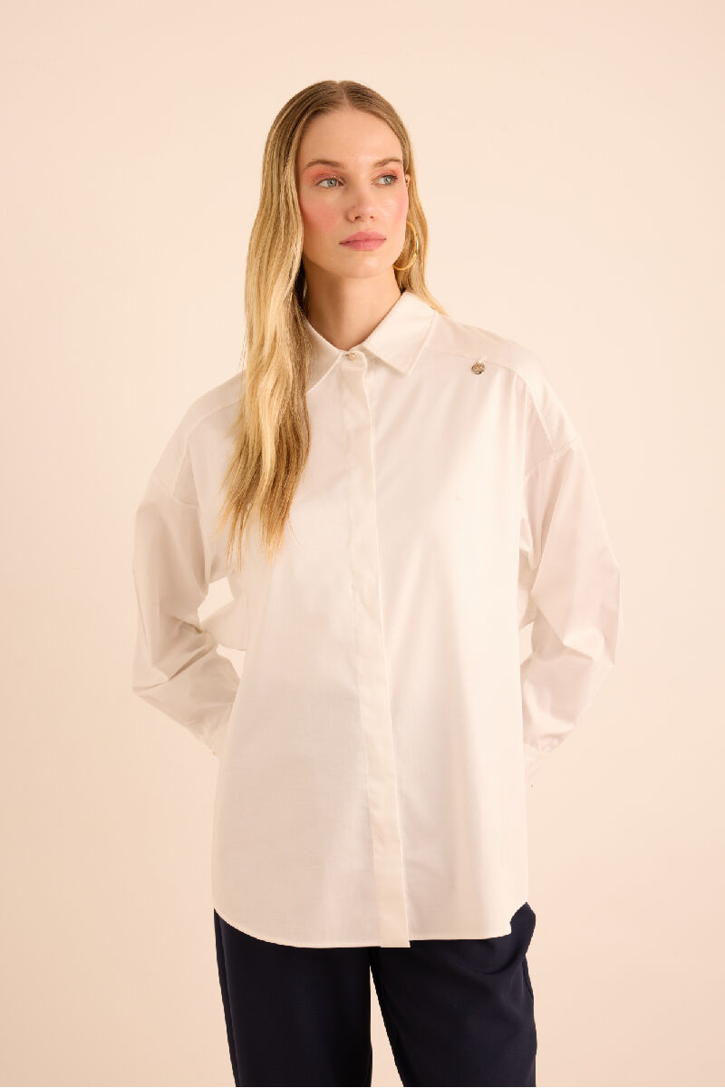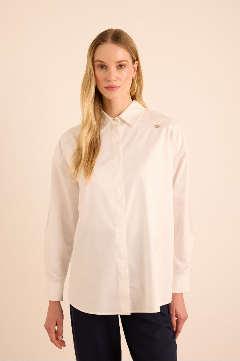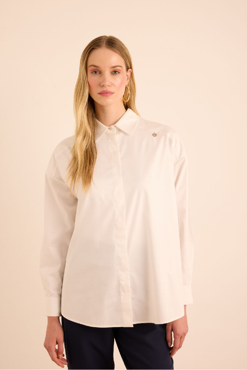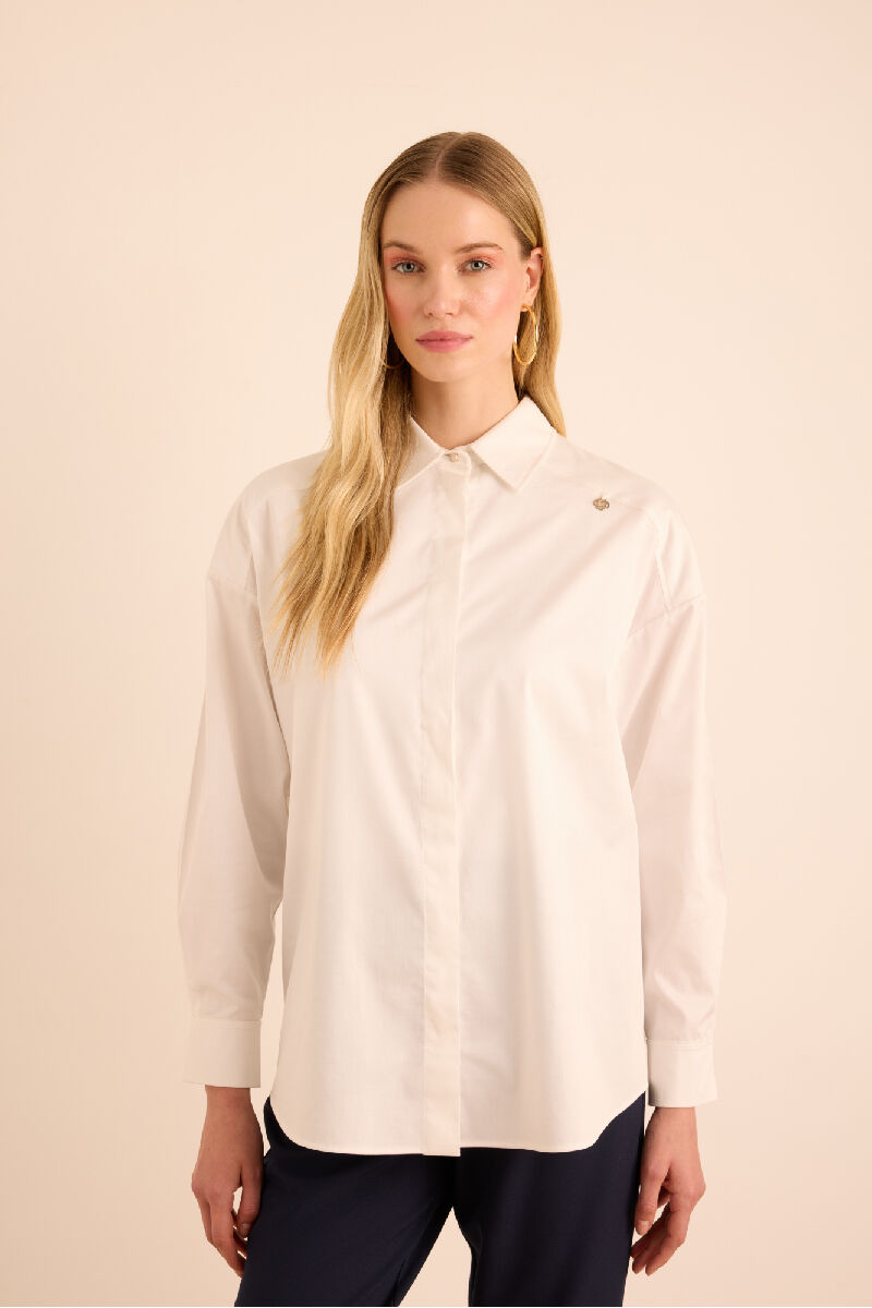 Beyaz Rahat Form Cotton Gömlek