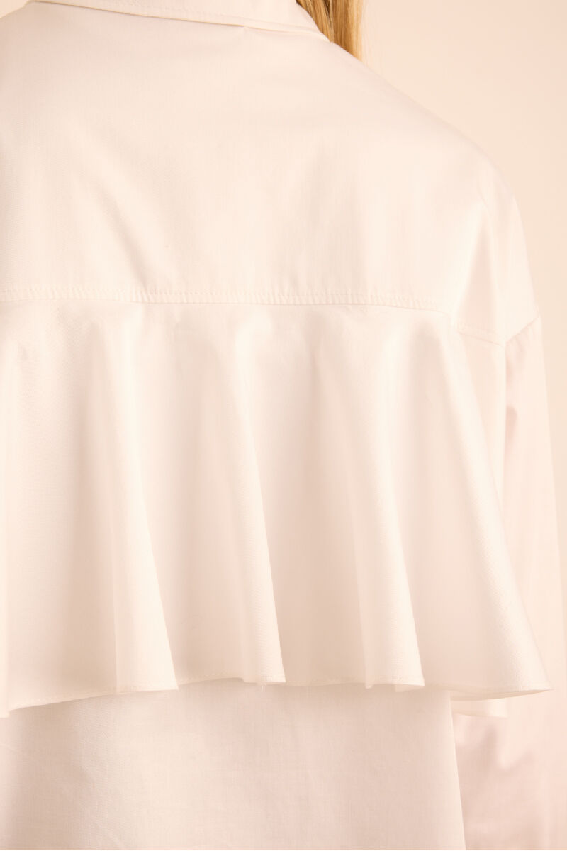 Beyaz Sırtı Volan Detaylı Cotton Gömlek