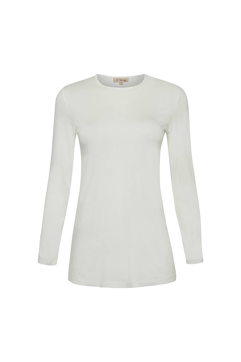 Beyaz Uzun Kollu Bisiklet Yaka Body
