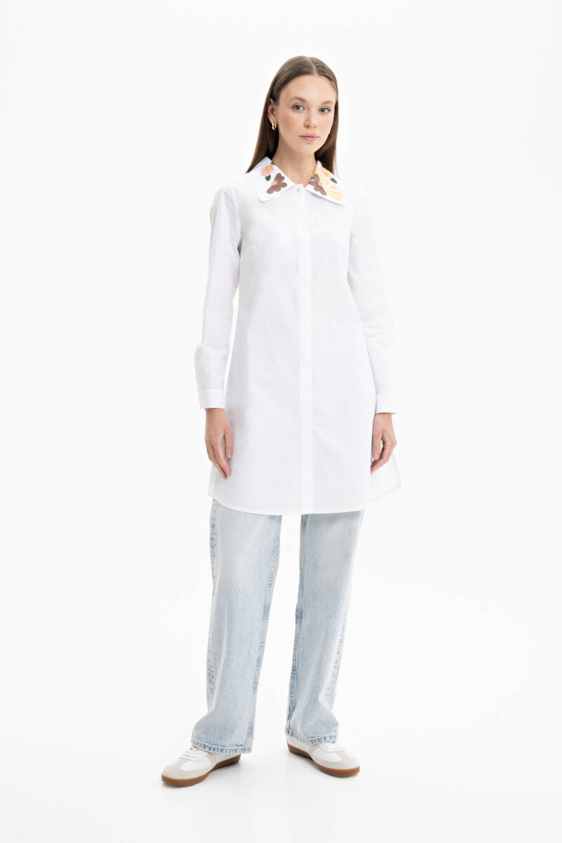 Mint Rahat Kesim İşleme Detaylı Tunik
