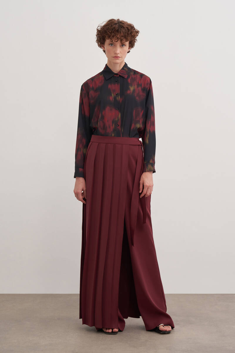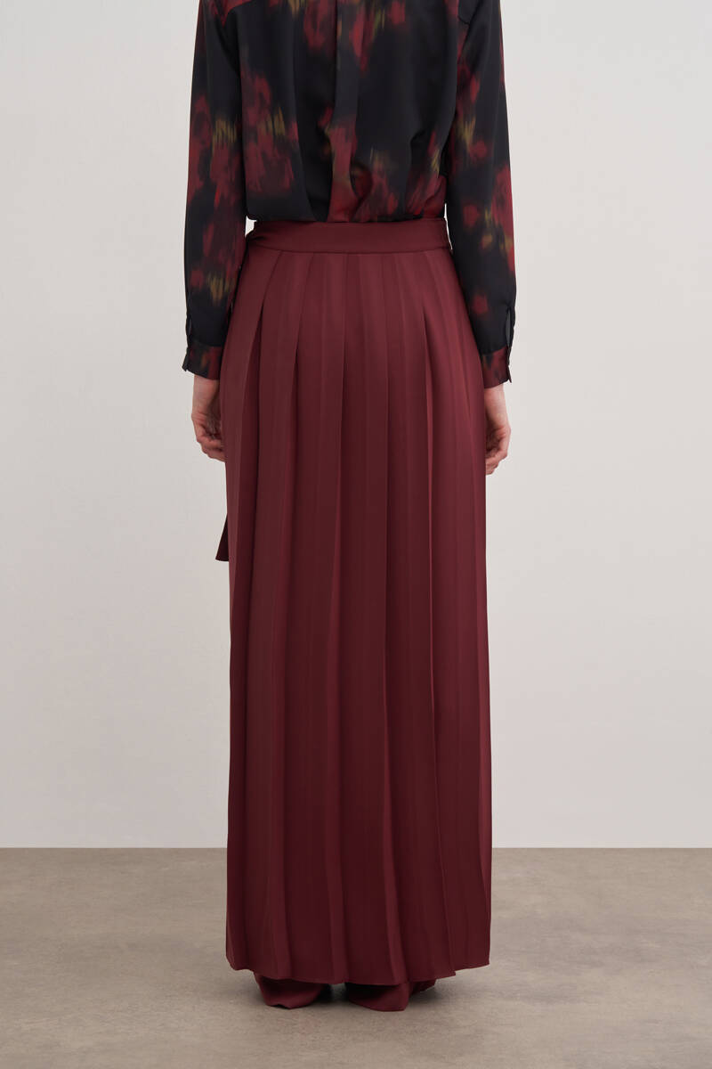Mor Desenli Beli Lastikli İpek Pantolon Etek