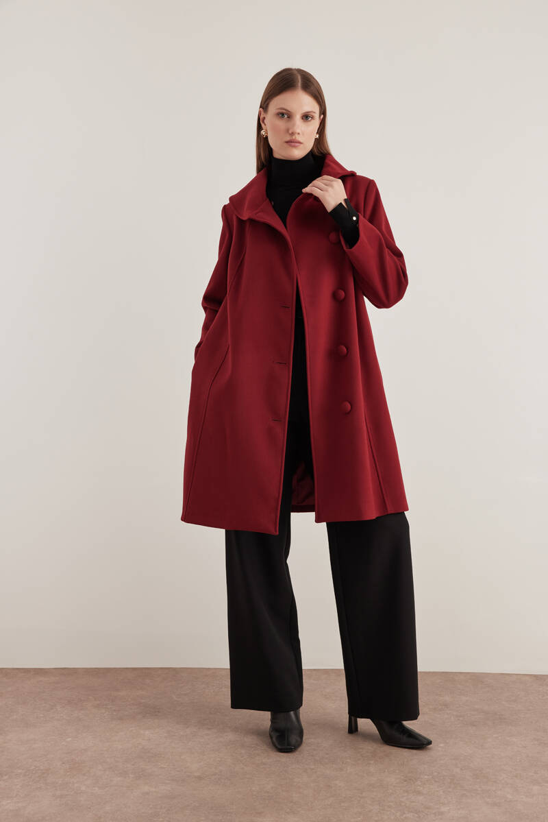 Bordo Asimetrik Yaka Kaban