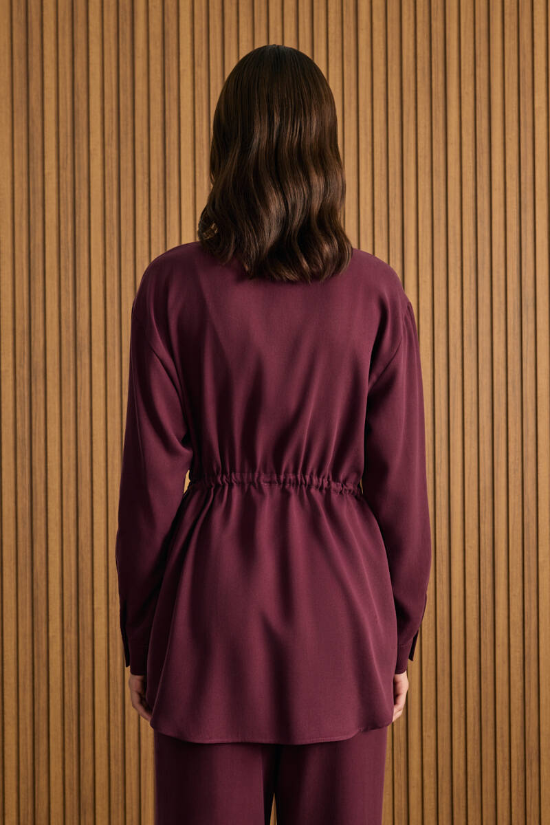 Fuşya Önden Apolet Detaylı Dokuma Tunik
