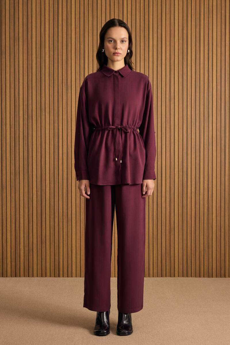 Kırmızı İspanyol Paça Dokuma Pantolon