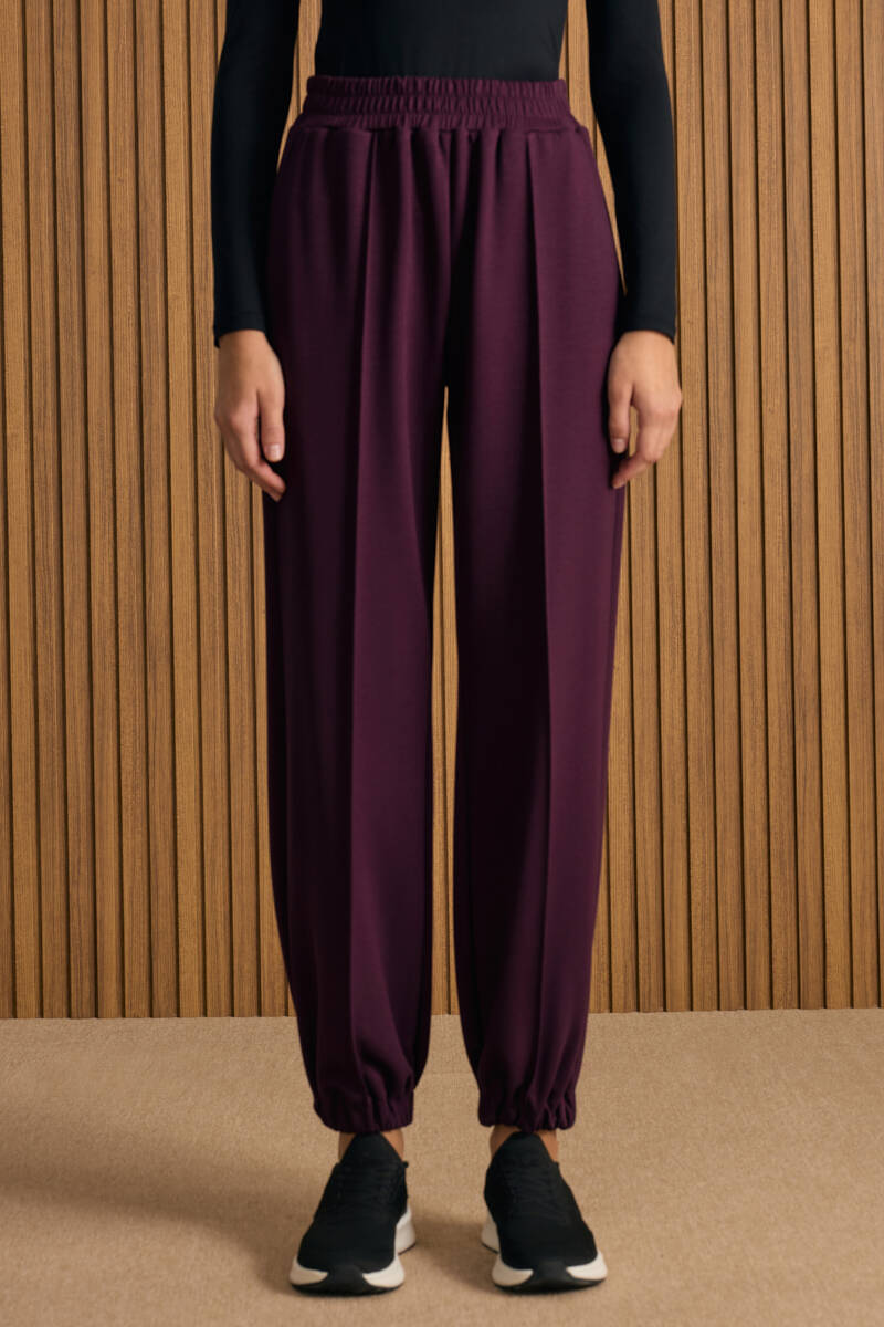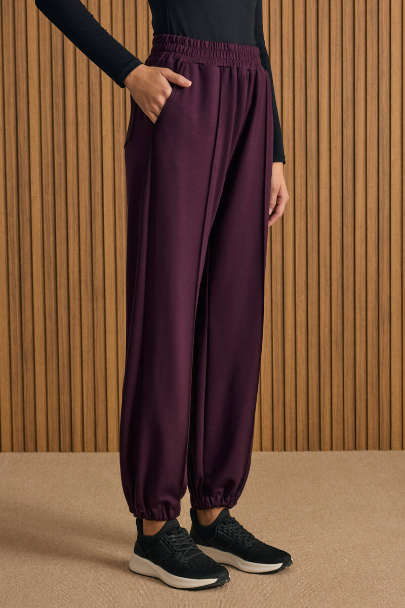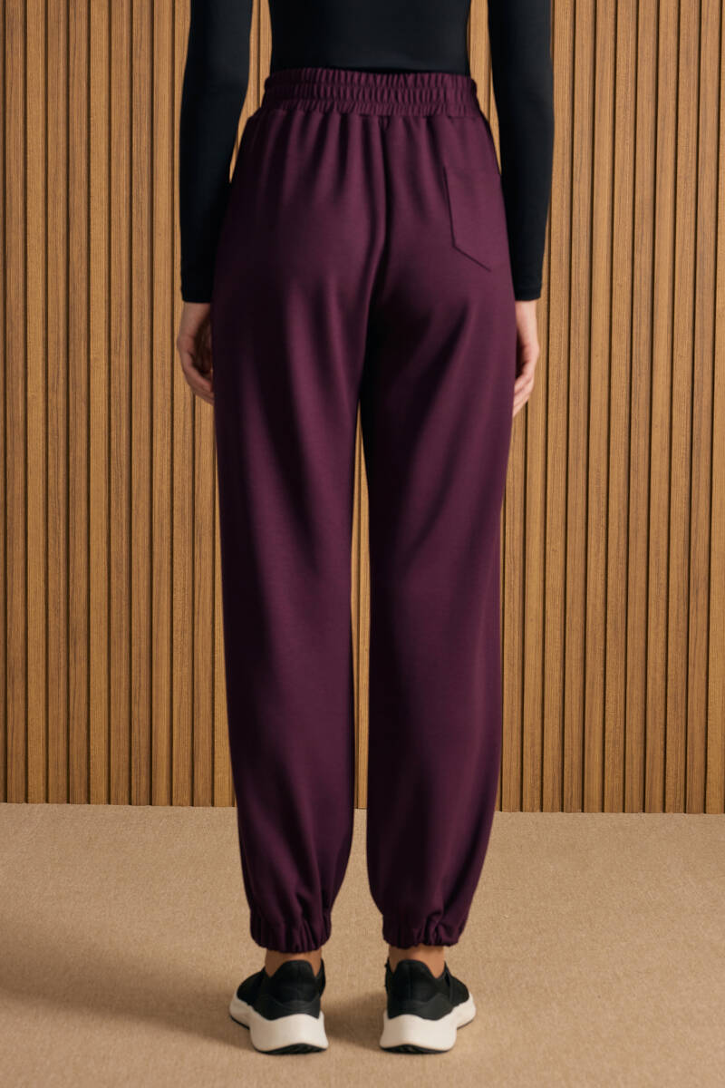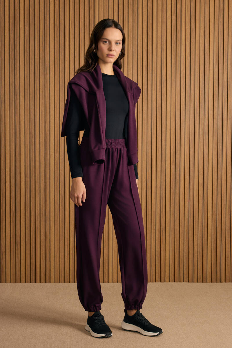 Bordo Beli ve Paçası Lastikli Viscon Örme Pantolon
