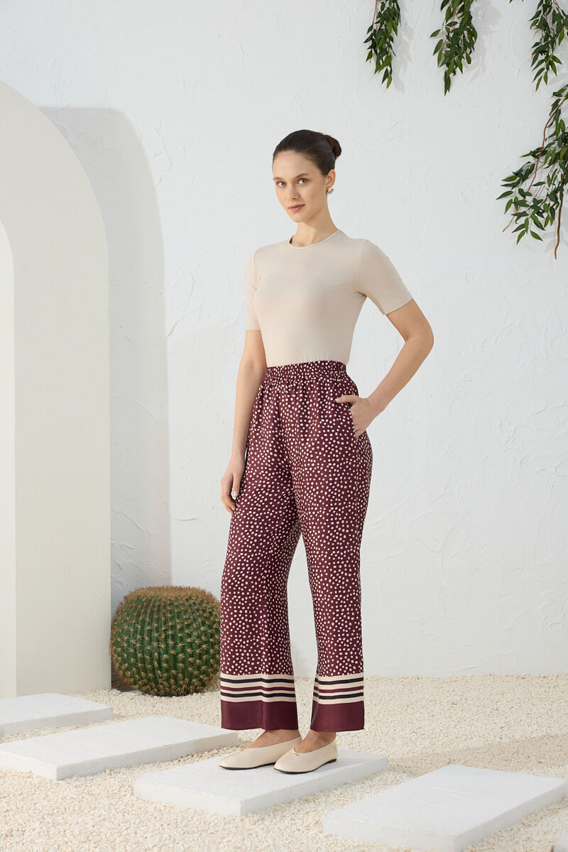 Siyah Geometrik Desenli Cotton Yaz Serinliği Pantolon