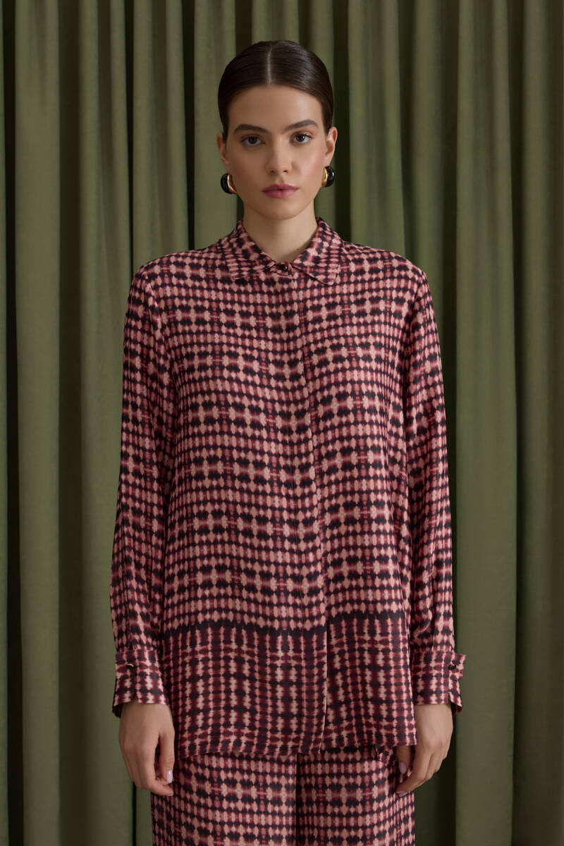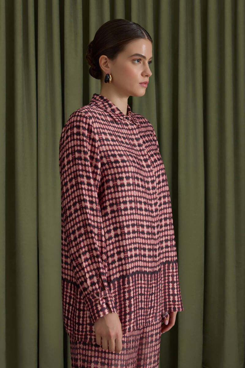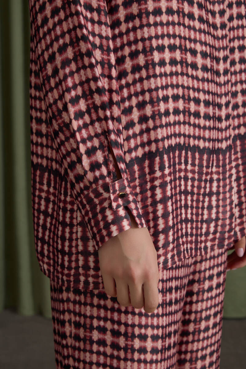 Bordo Desenli Viscon Beli Lastikli Pantolon