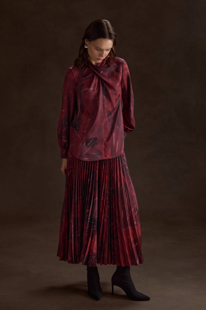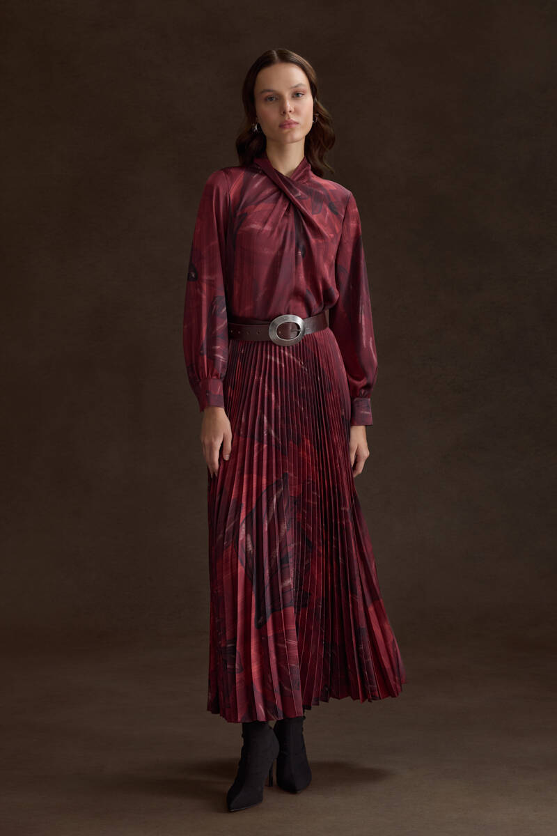Bordo Piliseli Desenli Etek