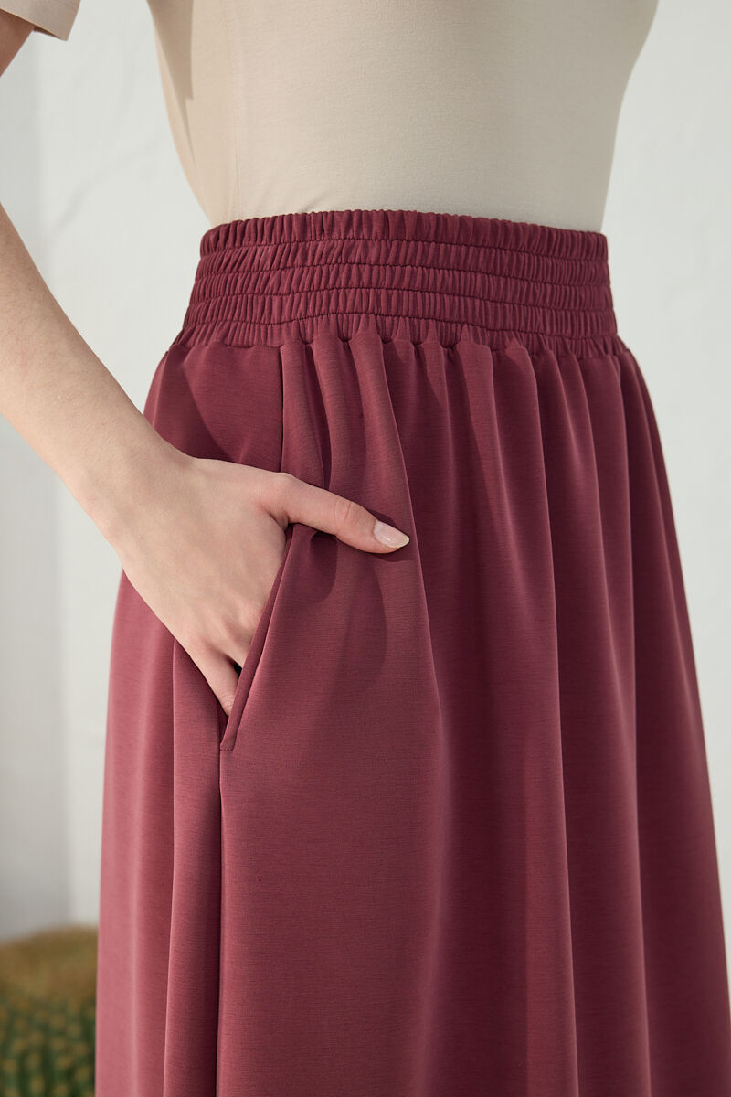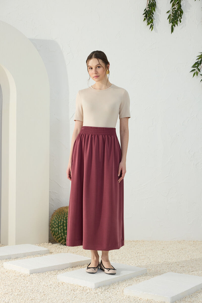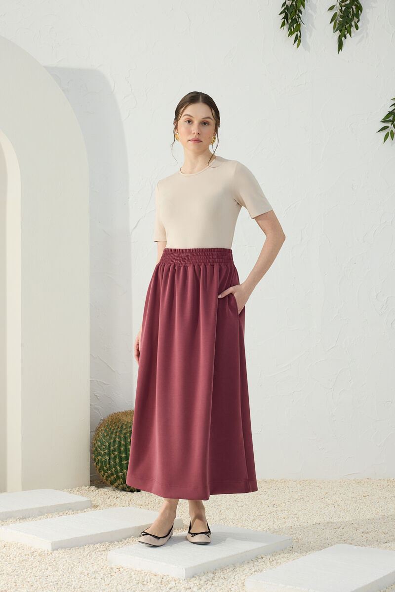 Bordo Geniş Lastik Detaylı Etek