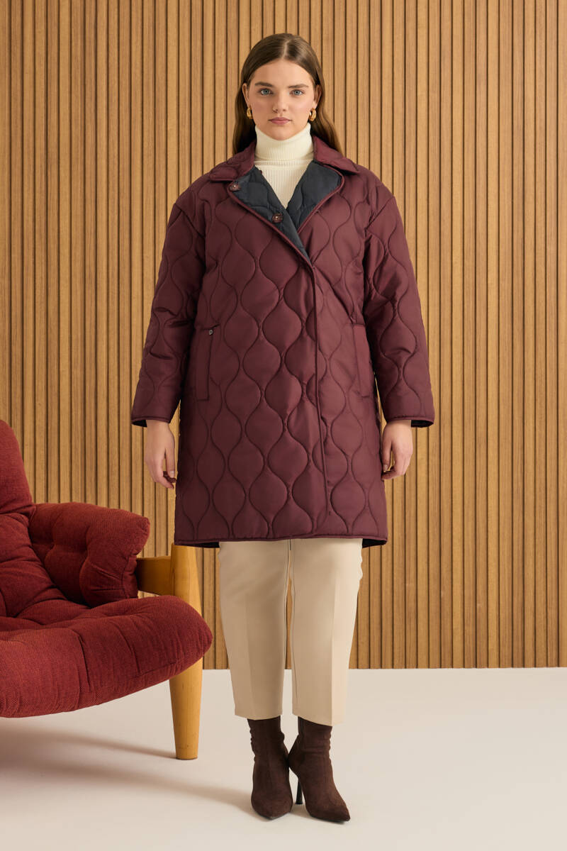 Kahverengi Çift Taraflı Kullanım Özellikli Kapitone Mont