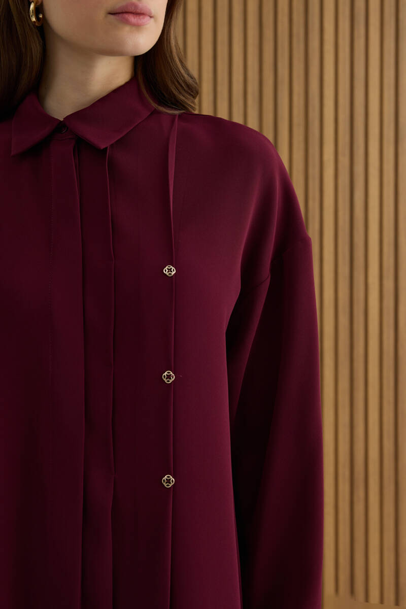 Ekru Kumaşı Püskül Yüzeyli Cotton Gömlek Elbise