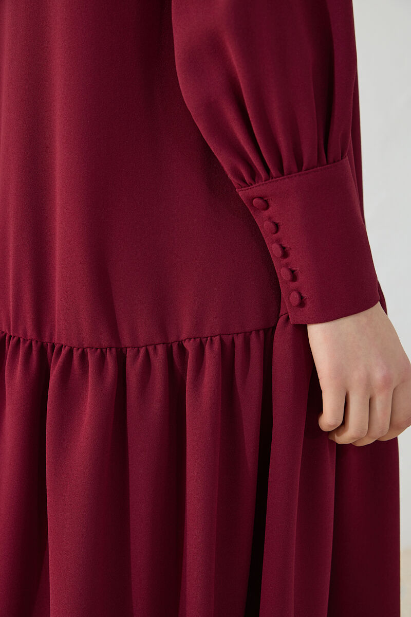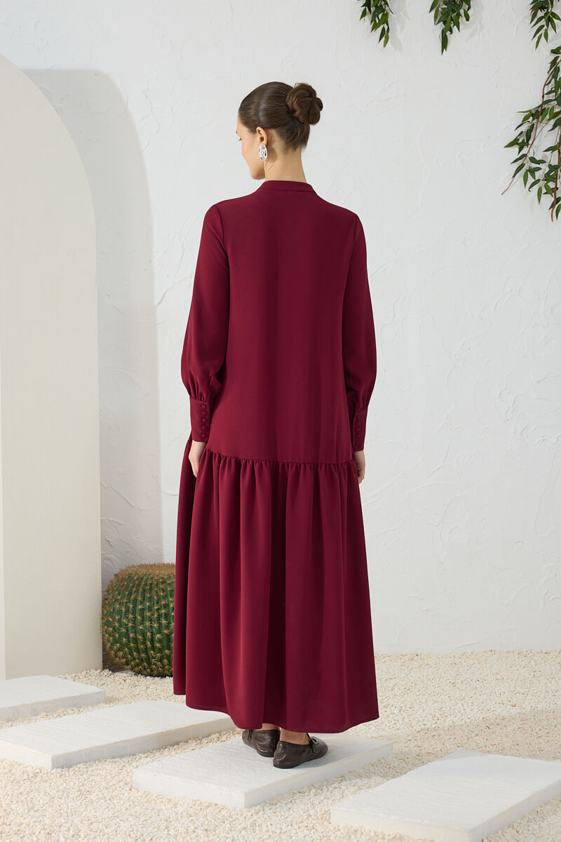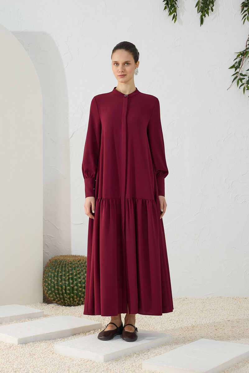 Bordo Anler Detaylı Fermuarlı Ferace