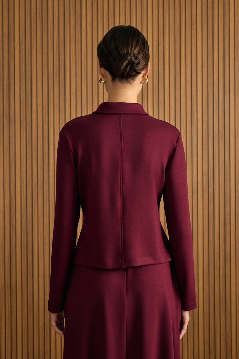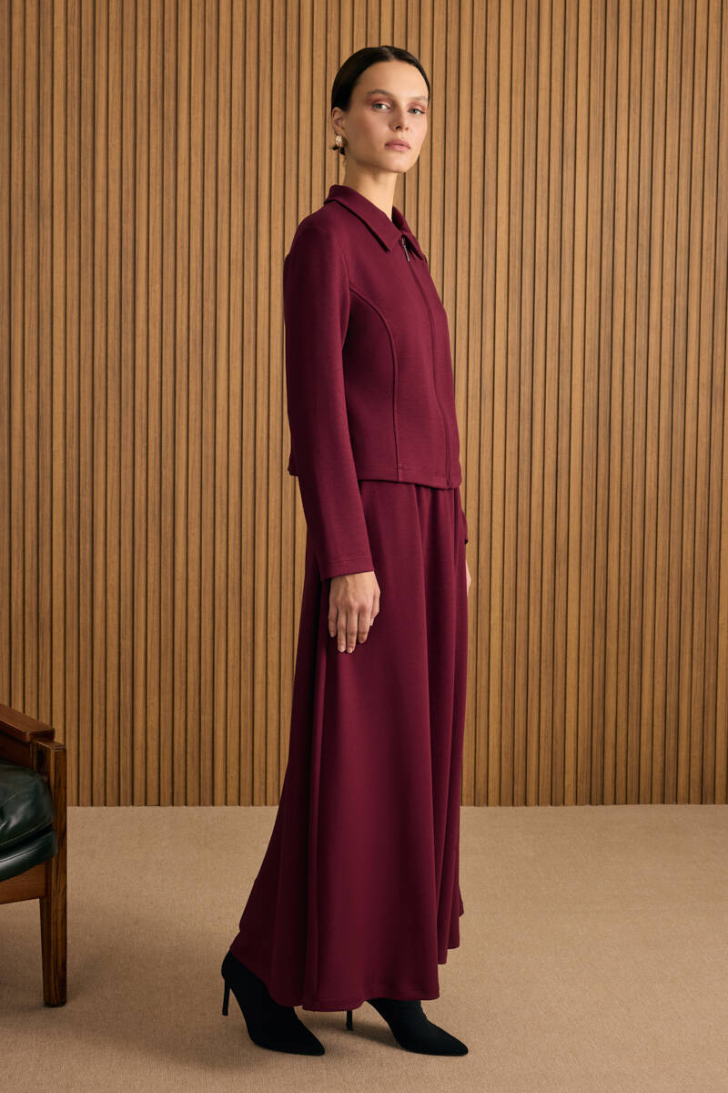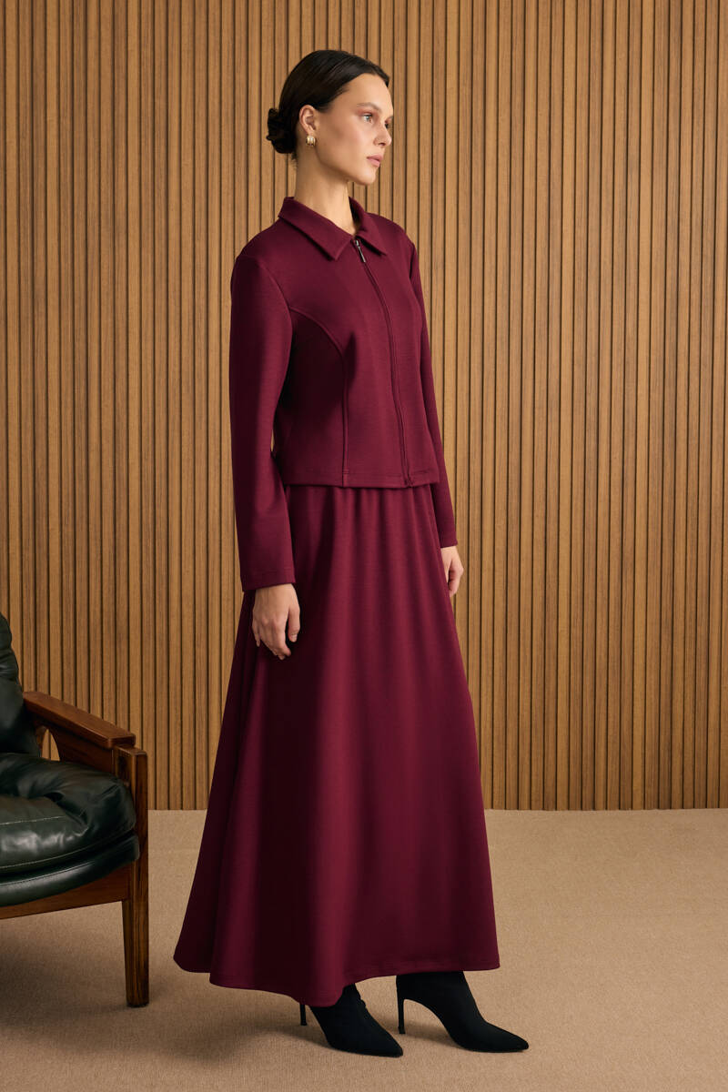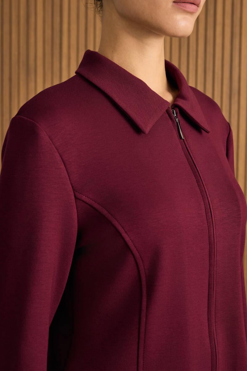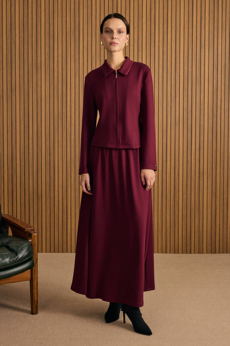 Bordo Önden Fermuarlı Kısa Örme Ceket