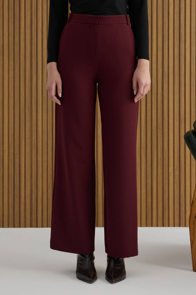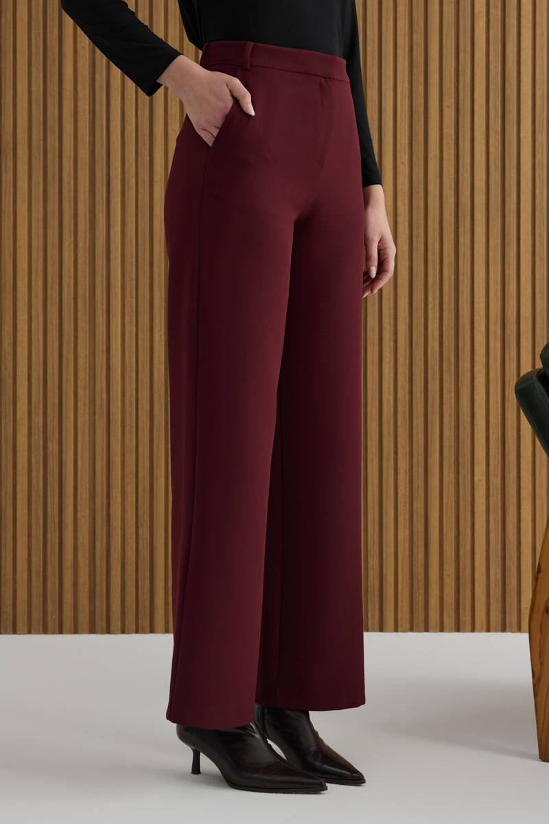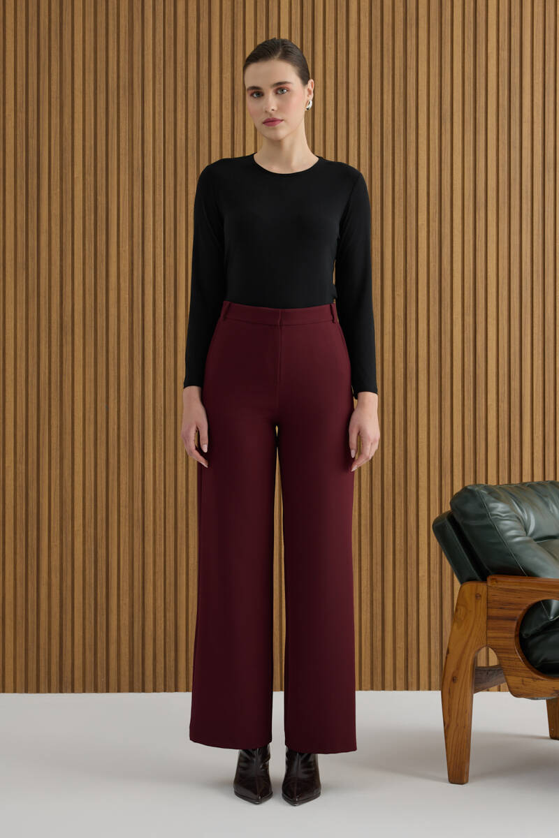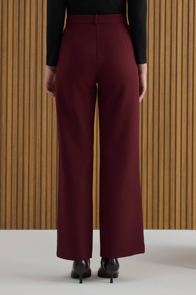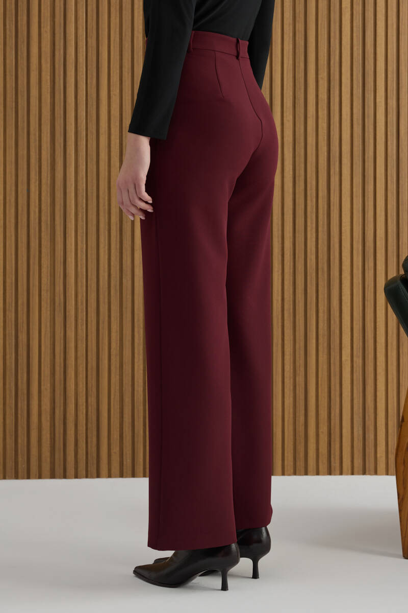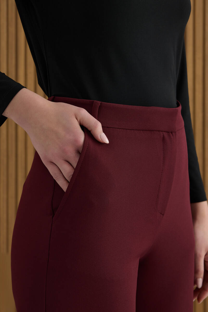 Bordo Paçası Yırtmaçlı Dokuma Pantolon