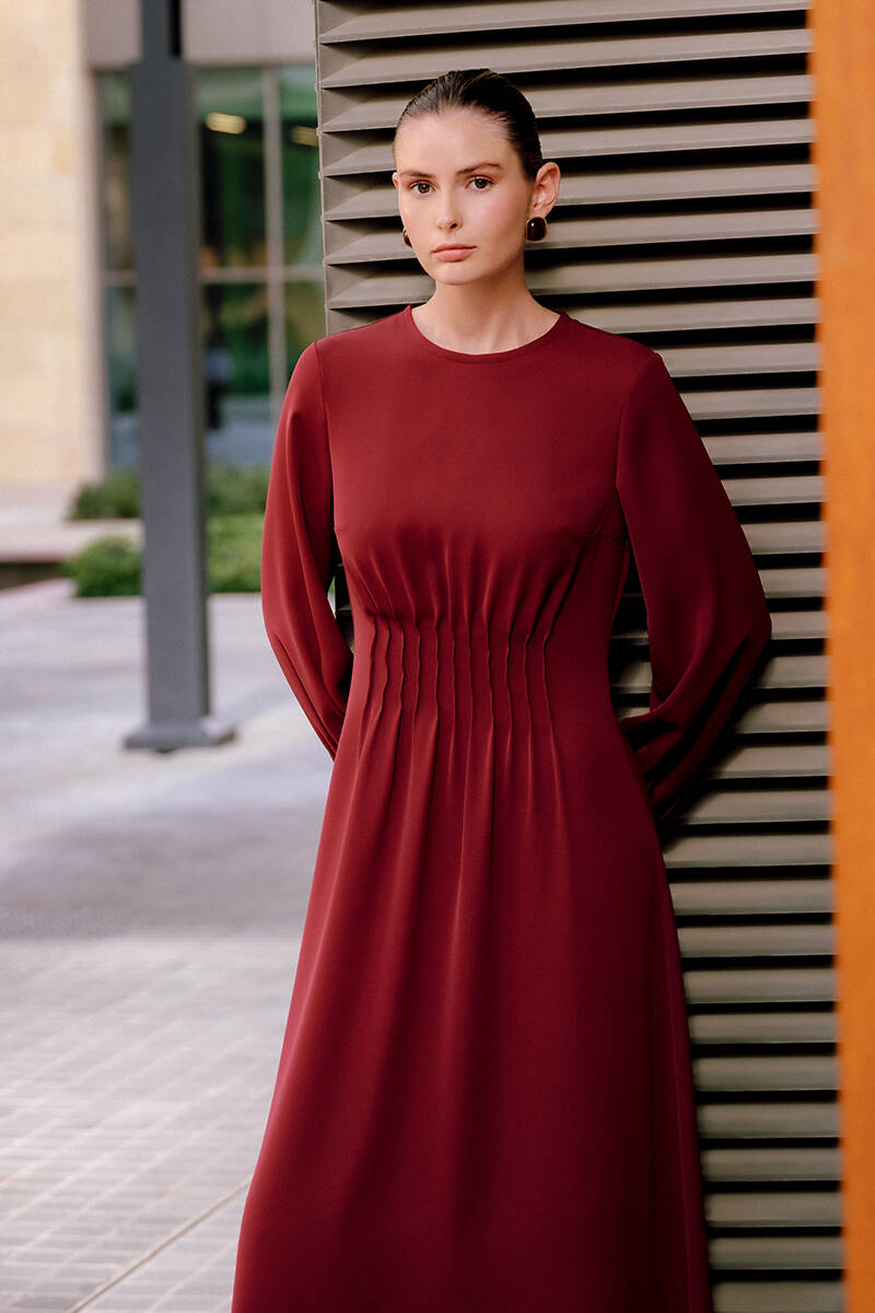 Kırmızı Çiçek Desenli İnce dokuma Elbise