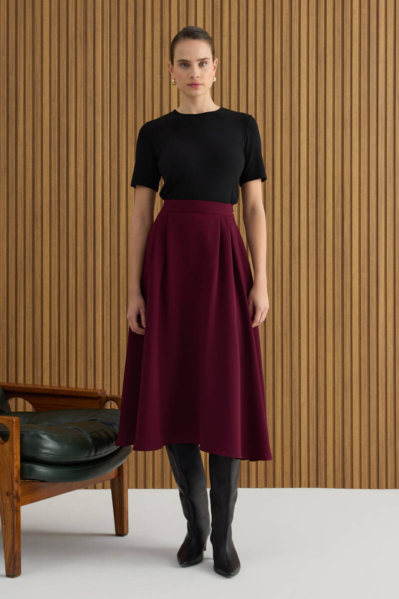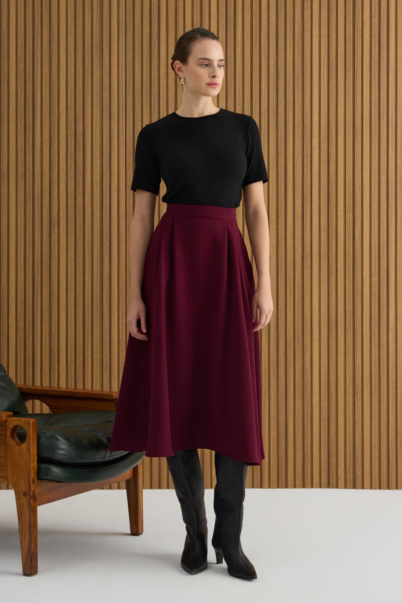 Siyah Kloş Yırtmaçllı Keten Etek