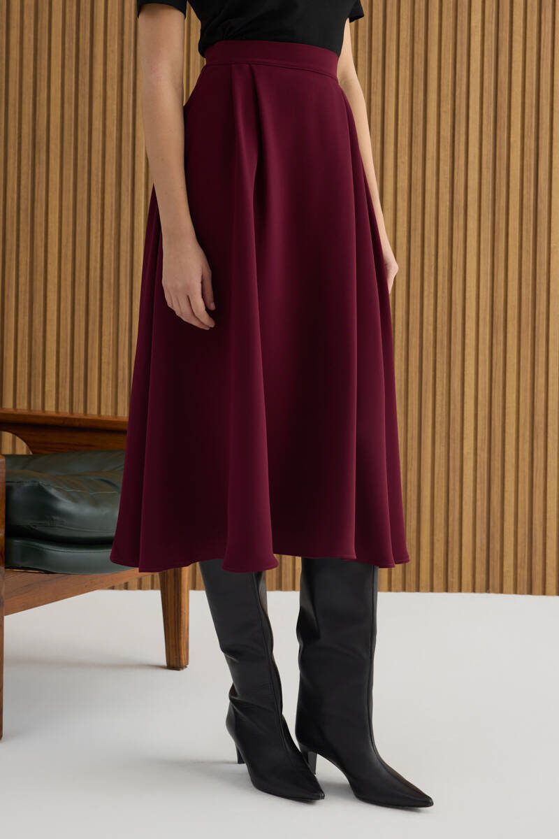 Lila Çıtır Çiçek Desen Kloş Etek