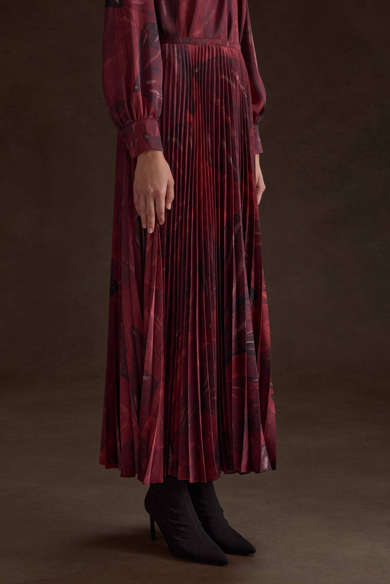 Bordo Desenli Yakası Çarpraz Kuplu Bluz