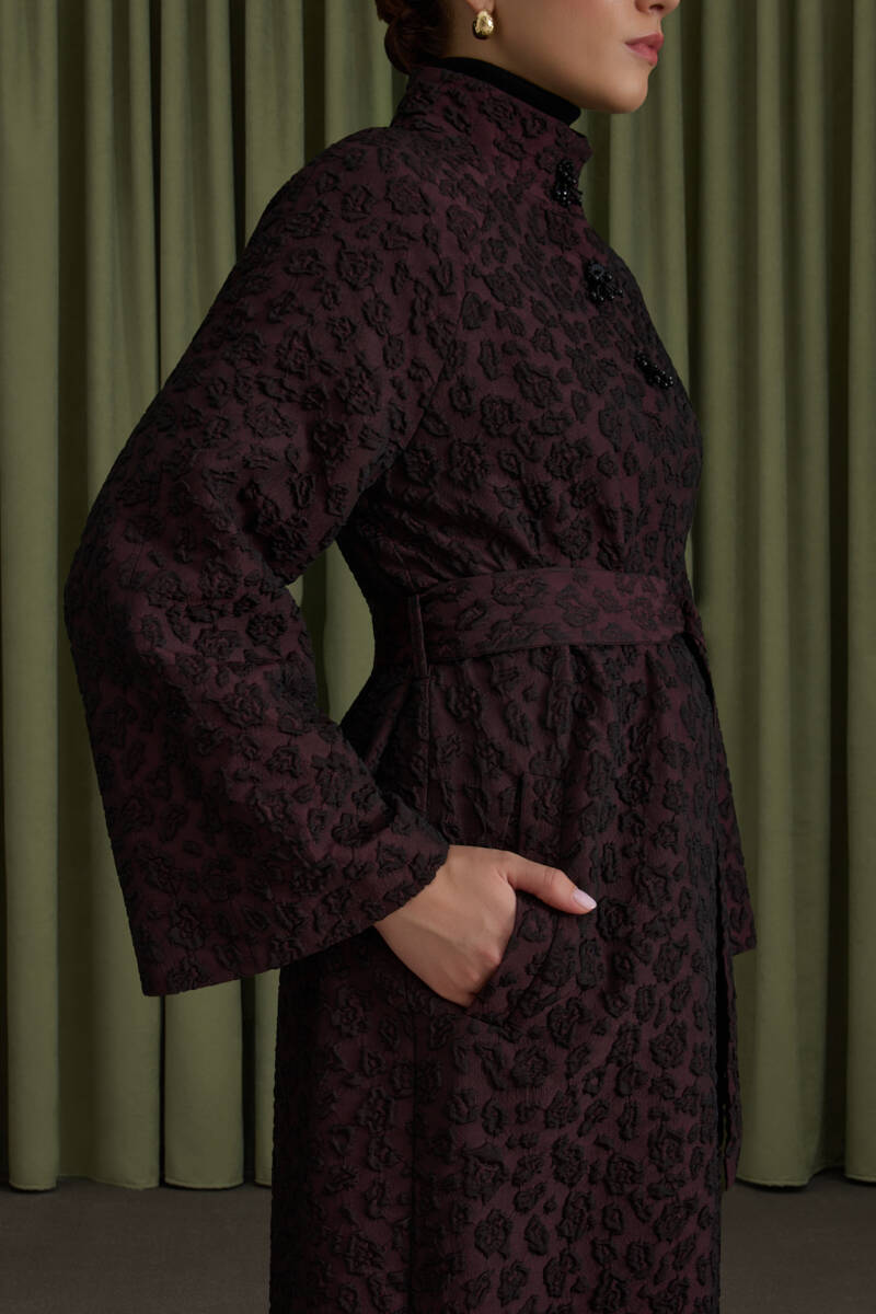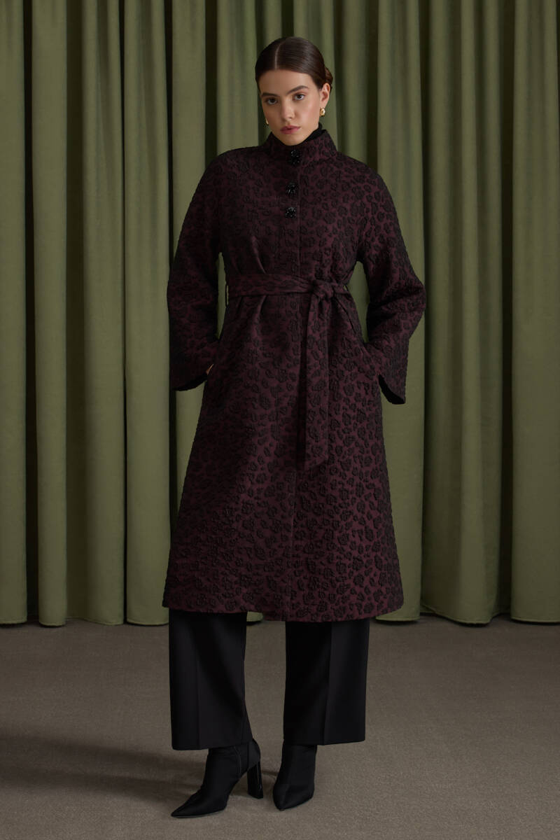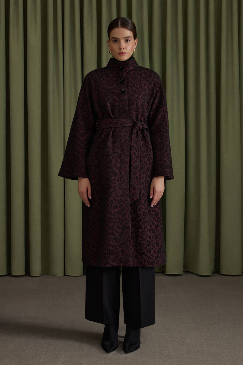 Bordo 90X90 B. Logolu İpek Koton Jakar Eşarp