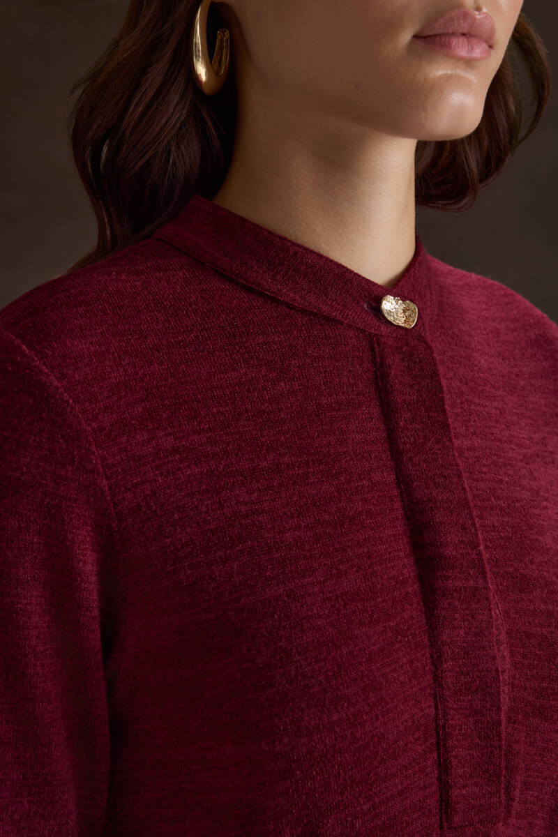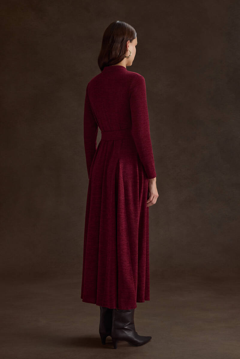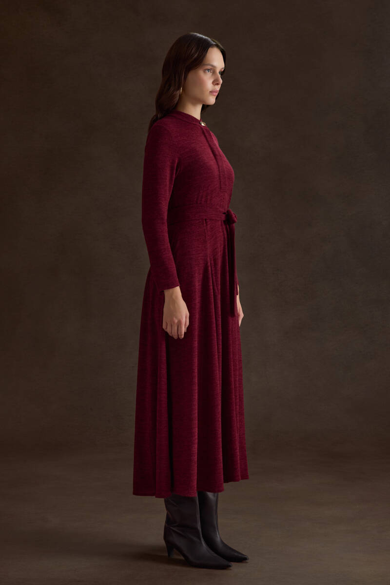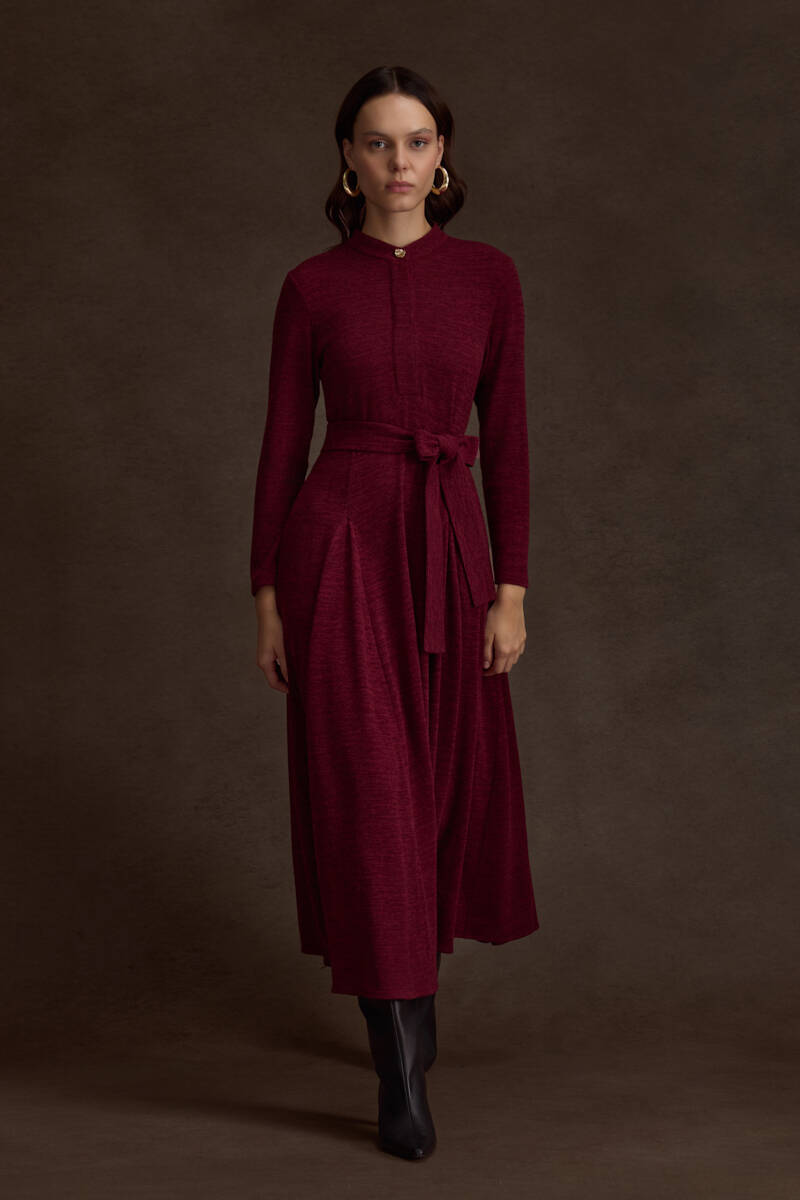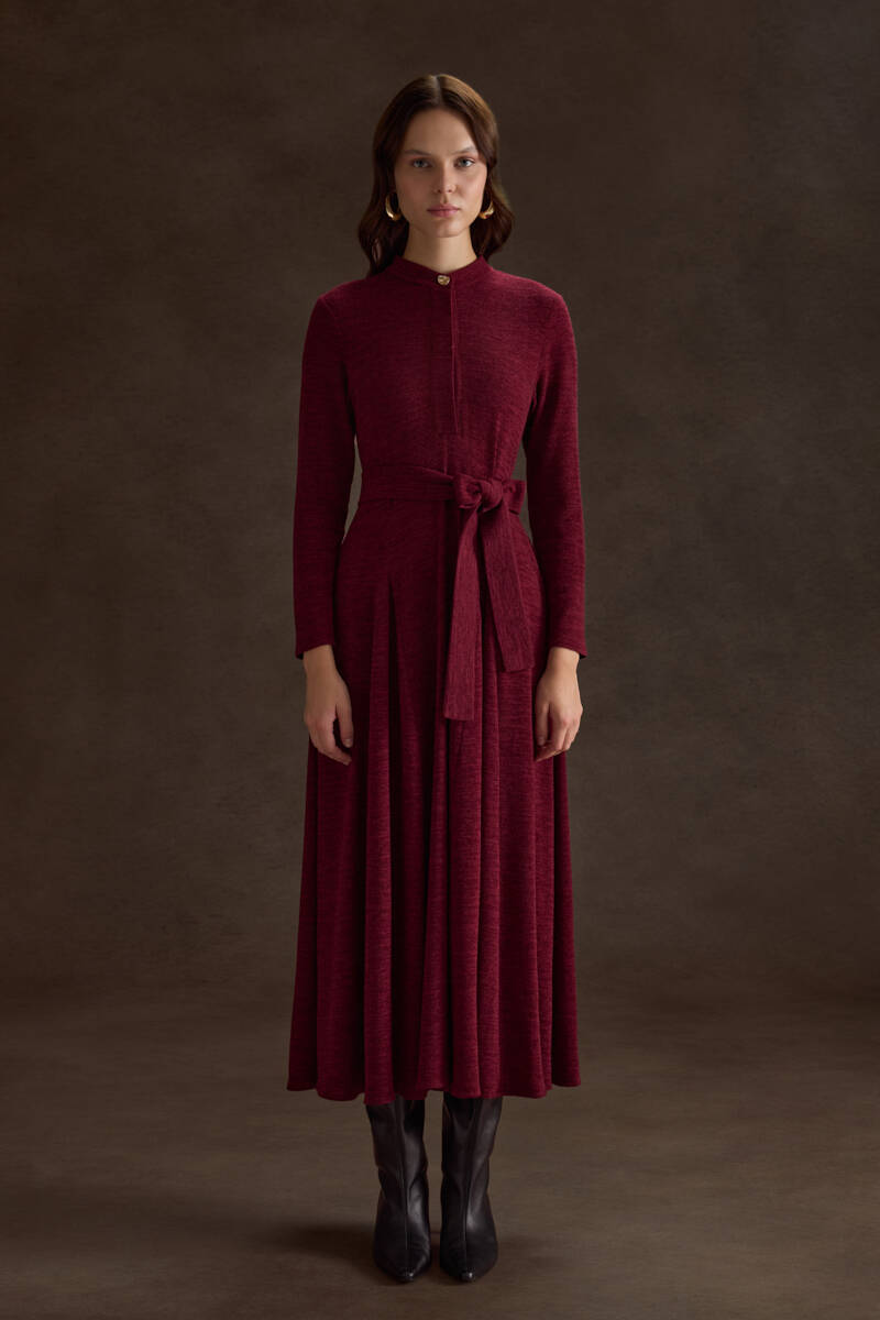Bordo Seyyar Kuşaklı ,Kloş Örme Elbise
