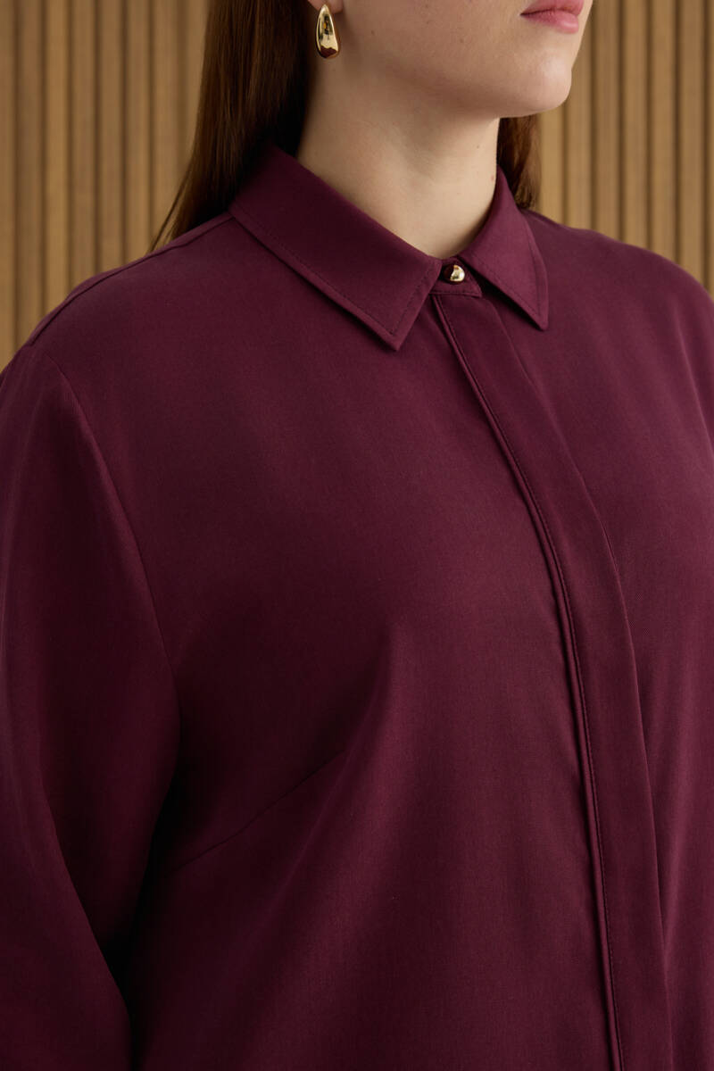 Kahverengi Yakası Fermuarlı Keten Tencel Tunik