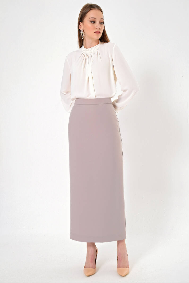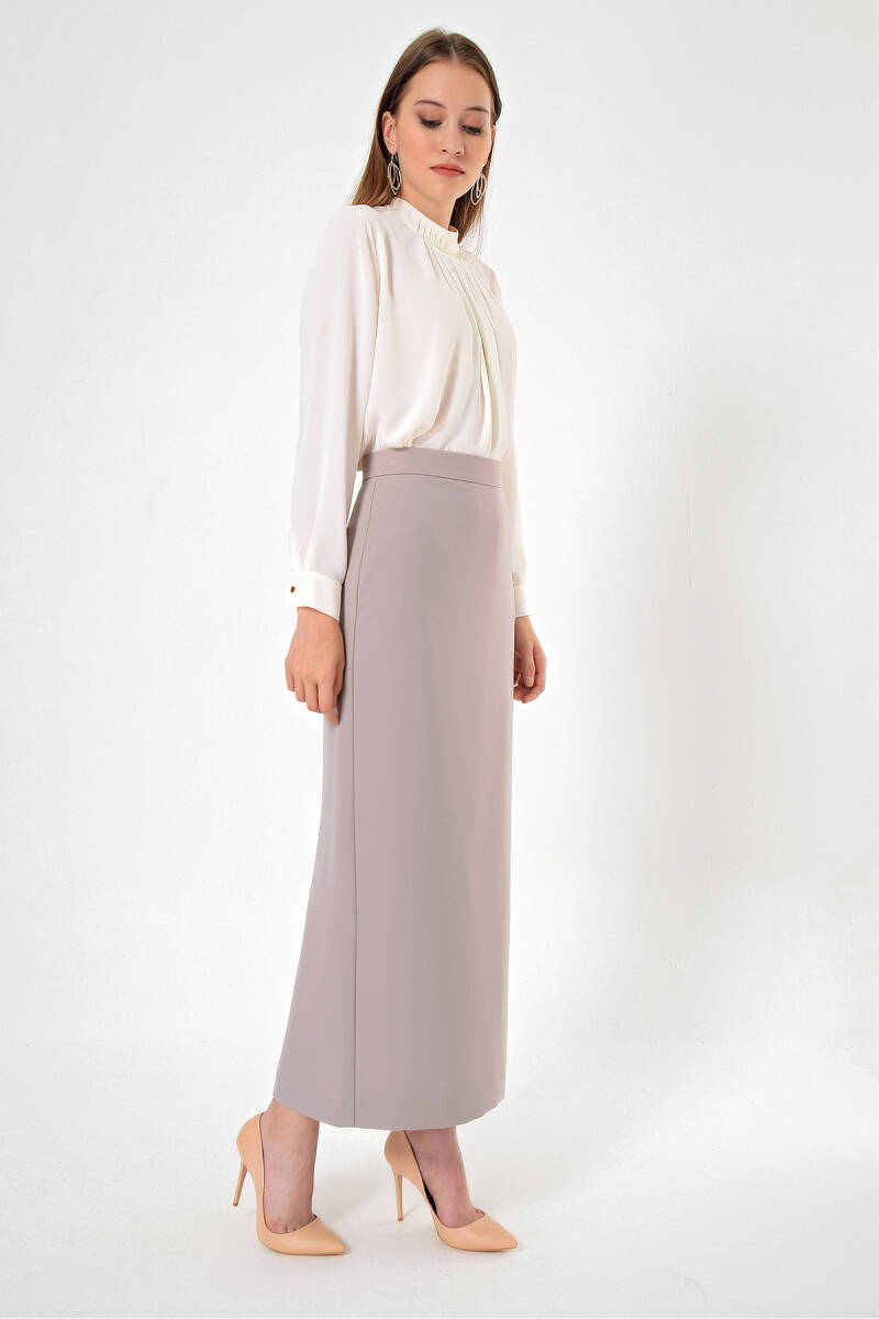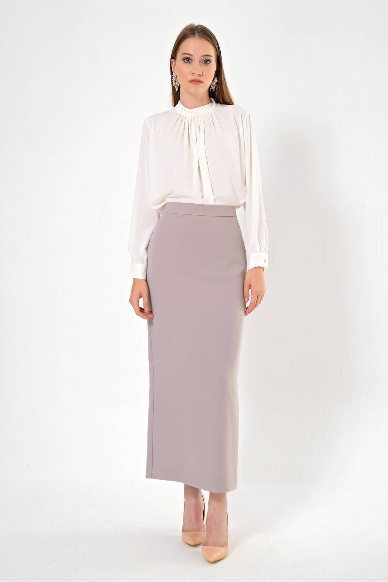 Vizon Düğmeli Düz Kalem Etek
