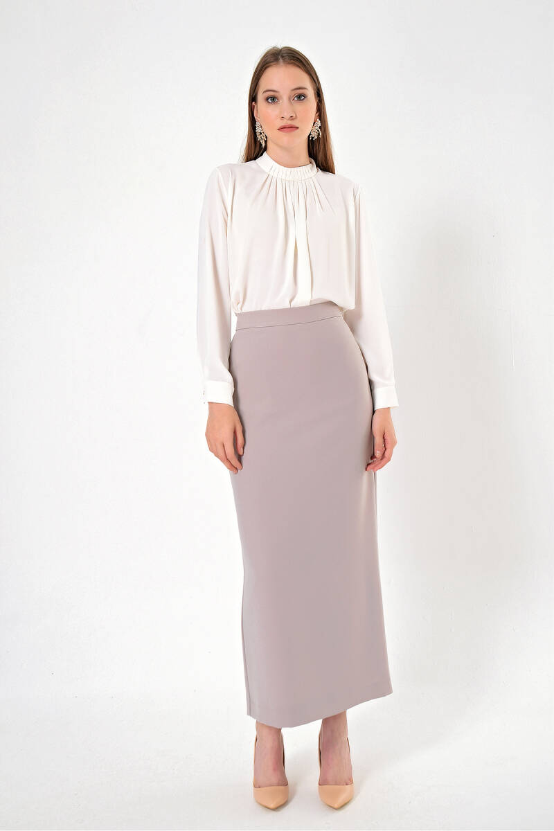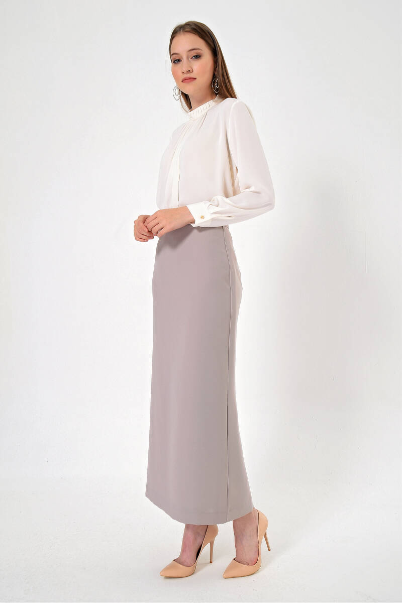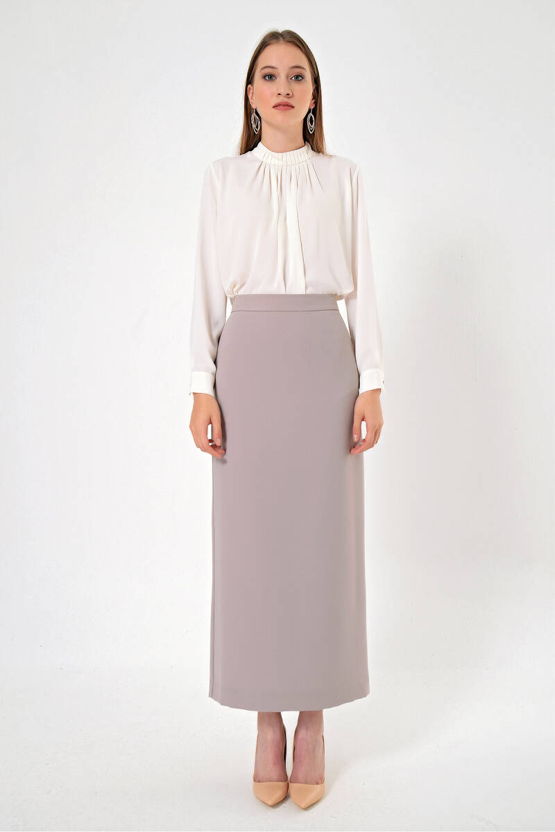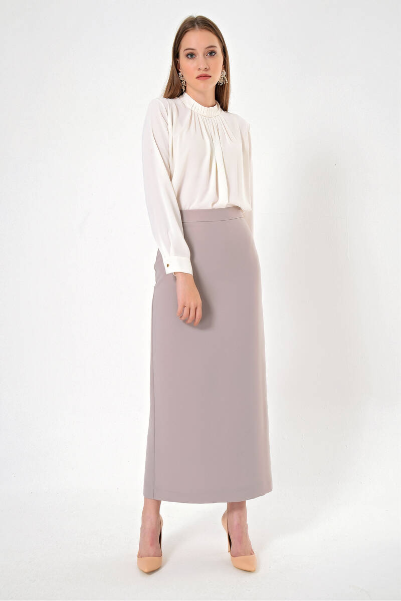 Vizon Düğmeli Düz Kalem Etek